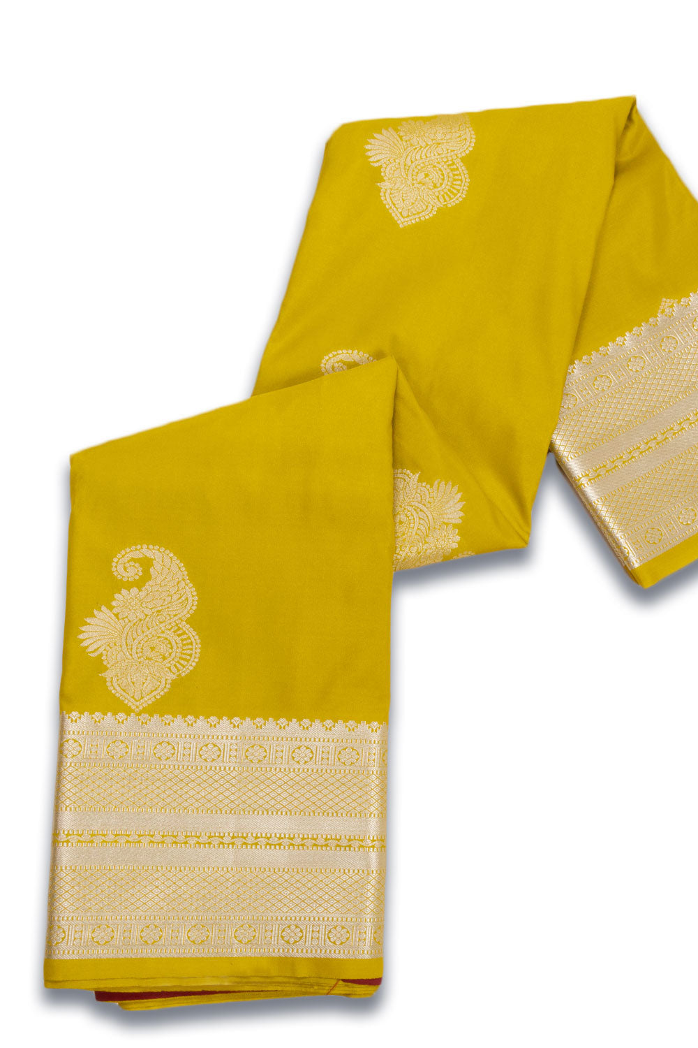 Yellow Kanjivaram Vegan Silk Saree with Contrast Pallu 10074874