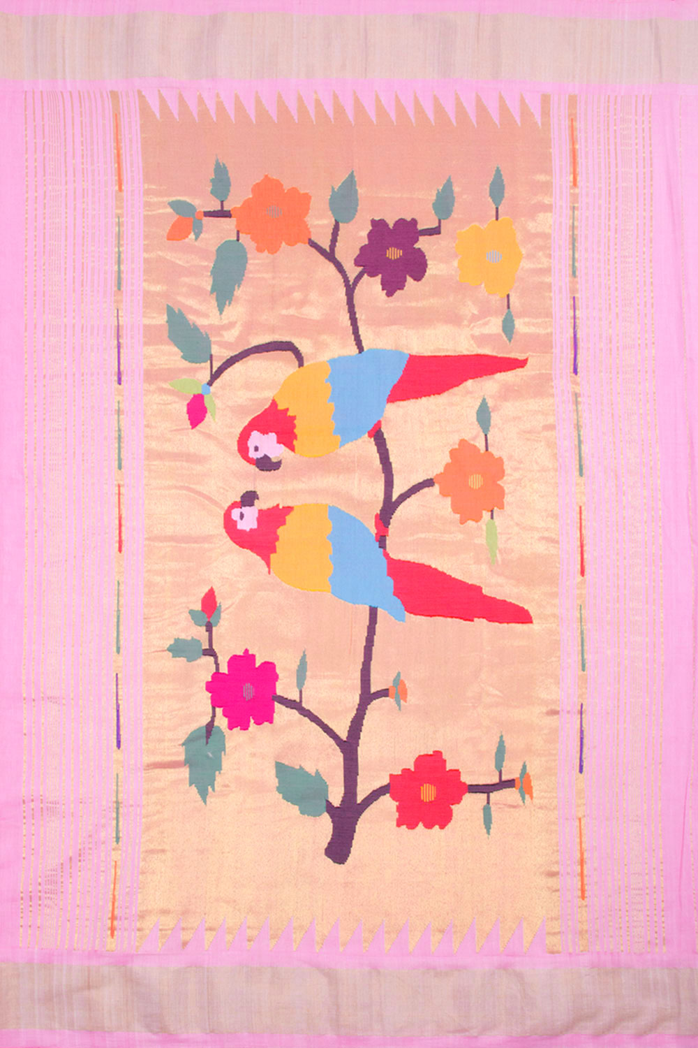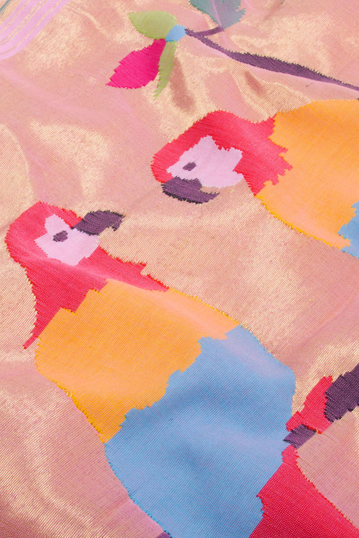 Powder Pink Handloom Paithani Cotton Saree 10062502