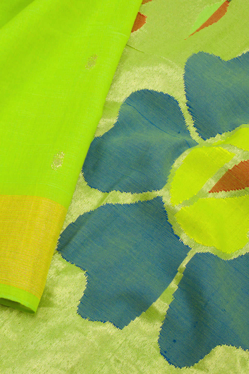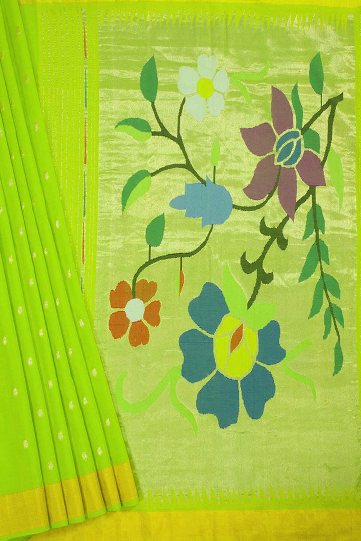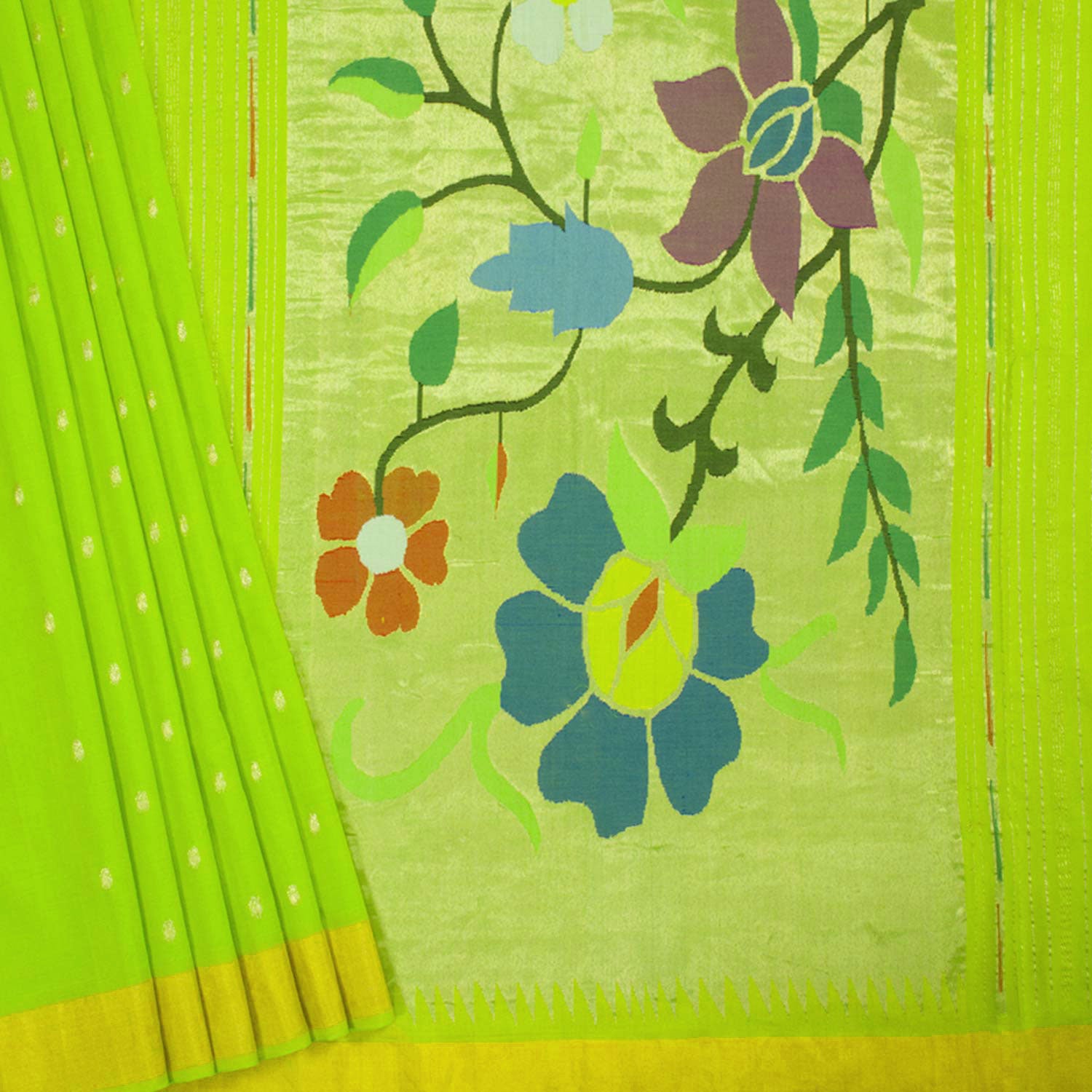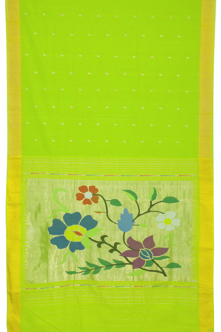 Lime Green Handloom Paithani Cotton Saree 10062503