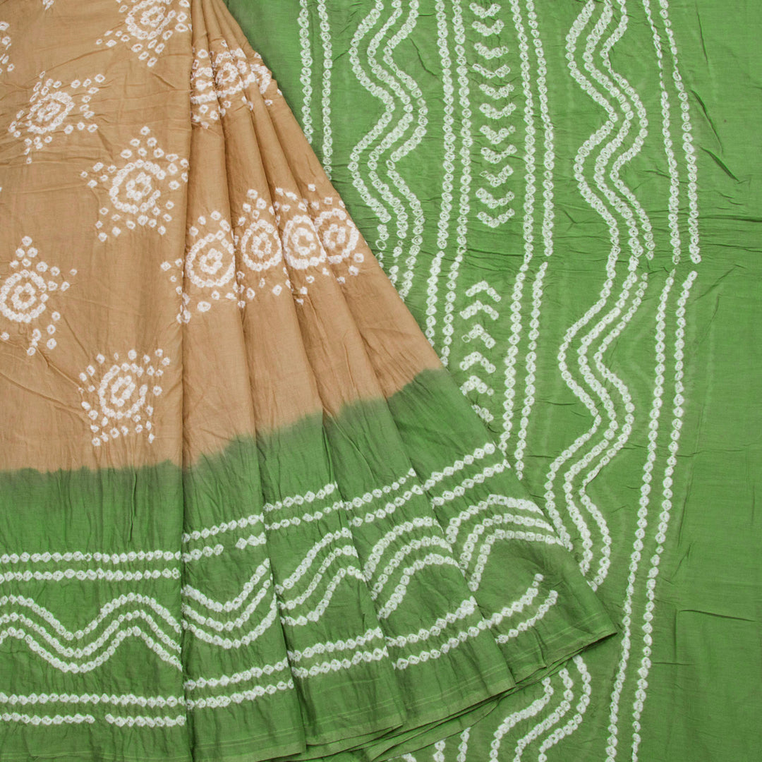 Cream Handcrafted Bandhani Mulmul Cotton Saree 10062536