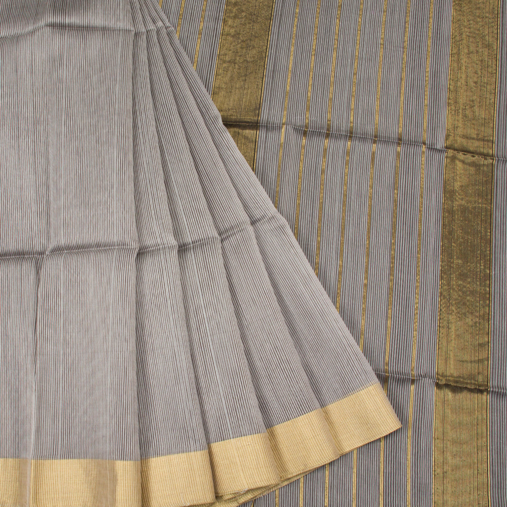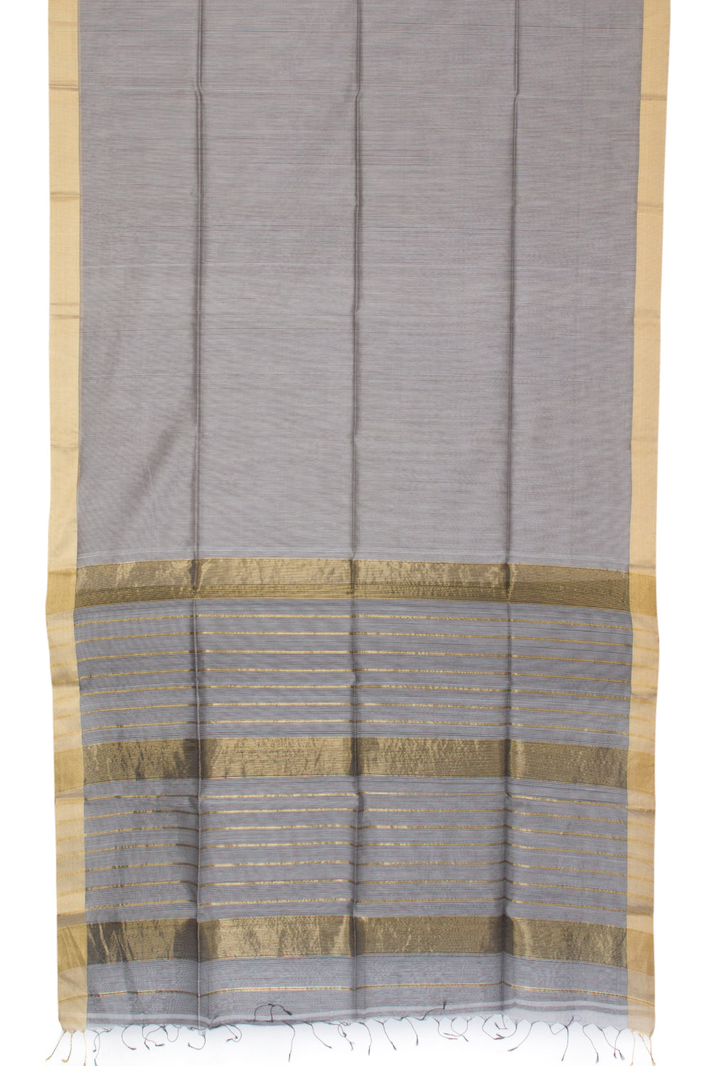 Silver Grey Handloom Maheswari Silk Cotton Saree 10062609