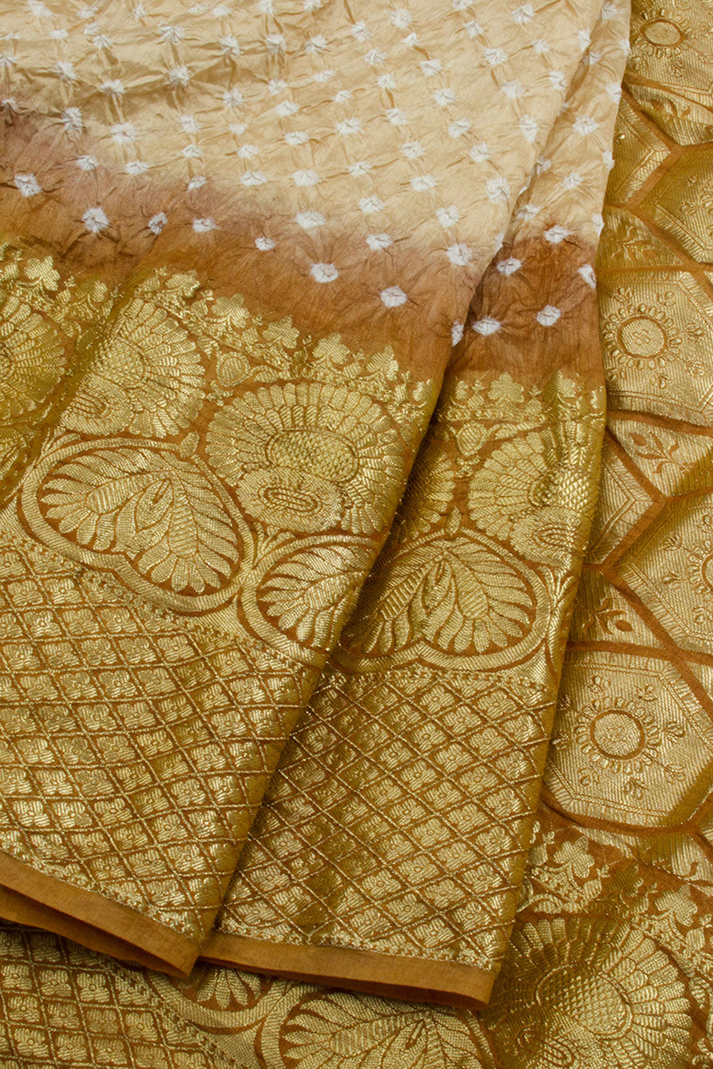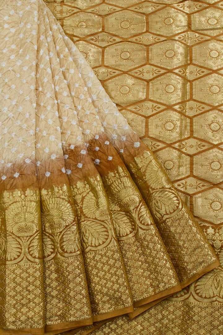 Cream Kanjivaram Pure Silk Bandhani Saree 10062802