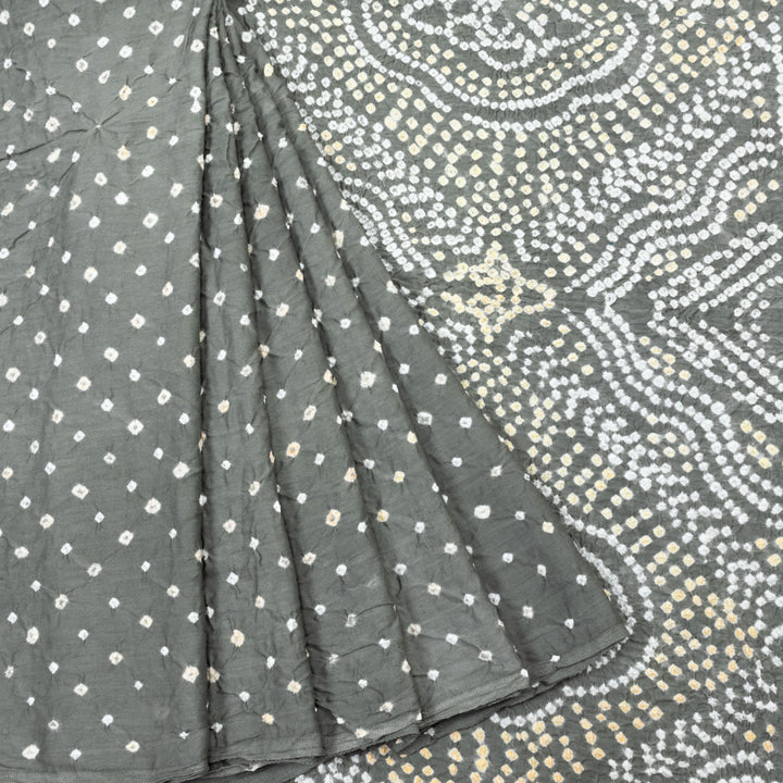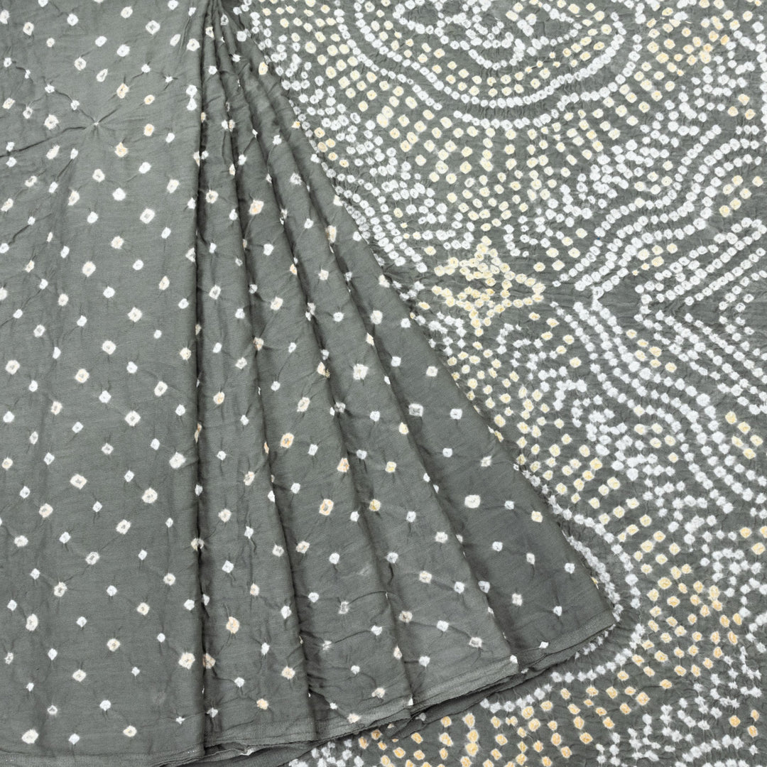 Grey Handcrafted Bandhani Cotton Saree 10062987