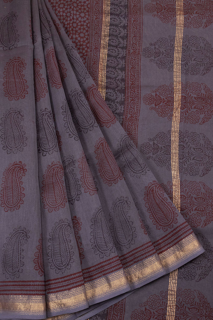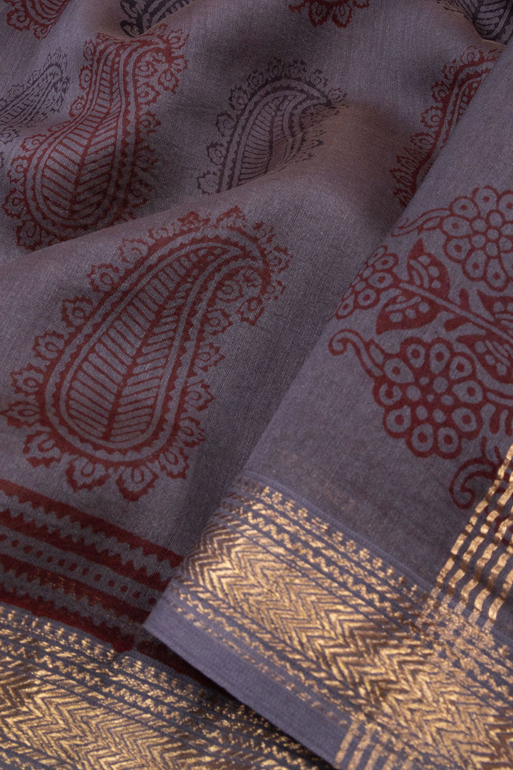 Grey Bagh Printed Silk Cotton Saree 10063034