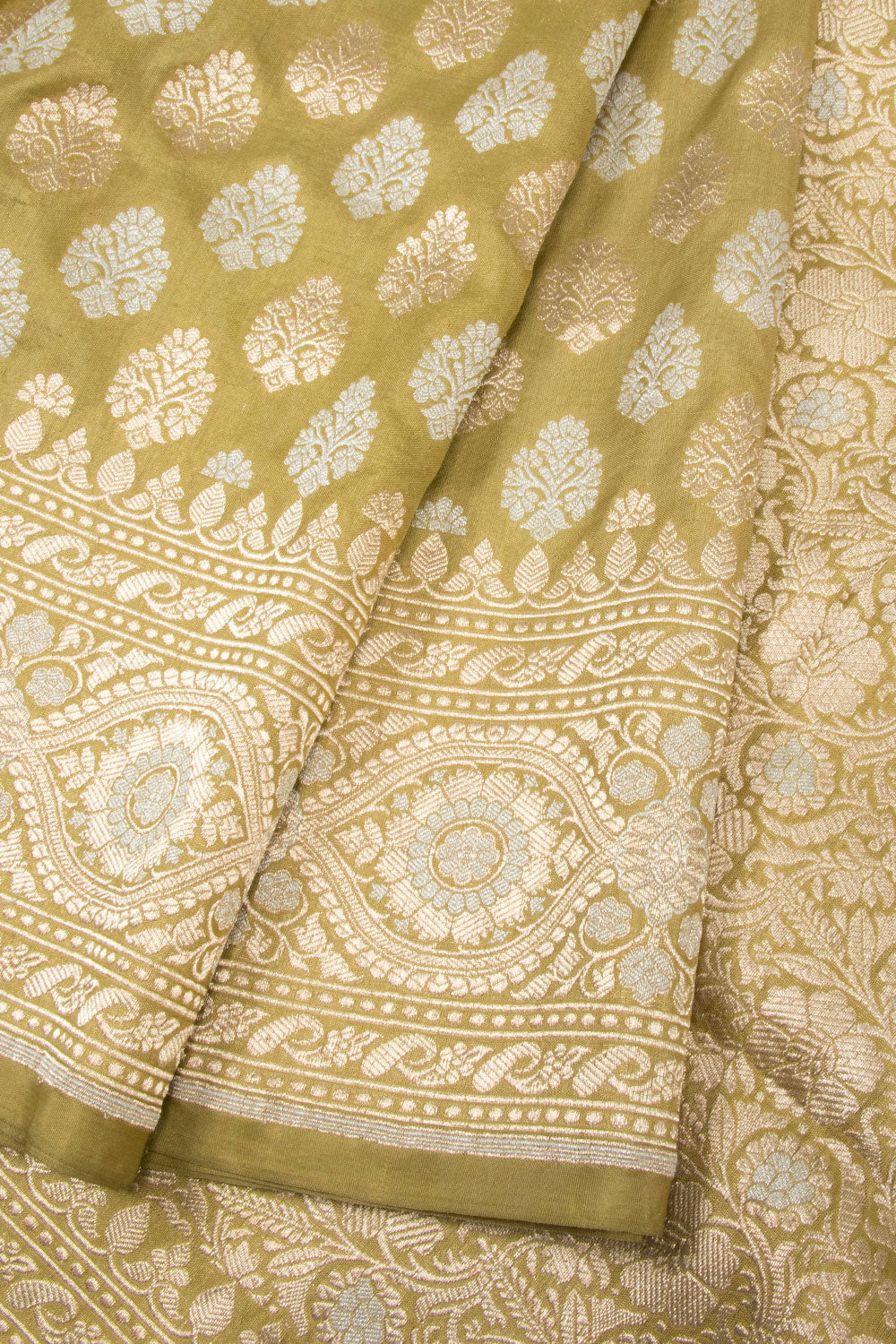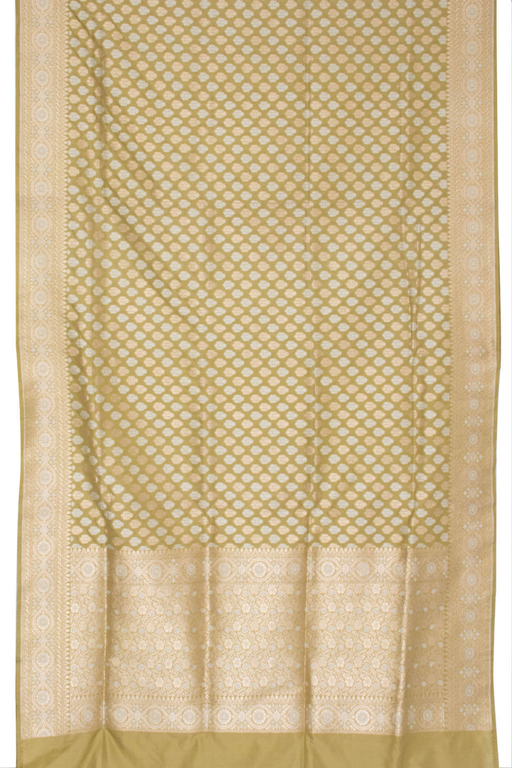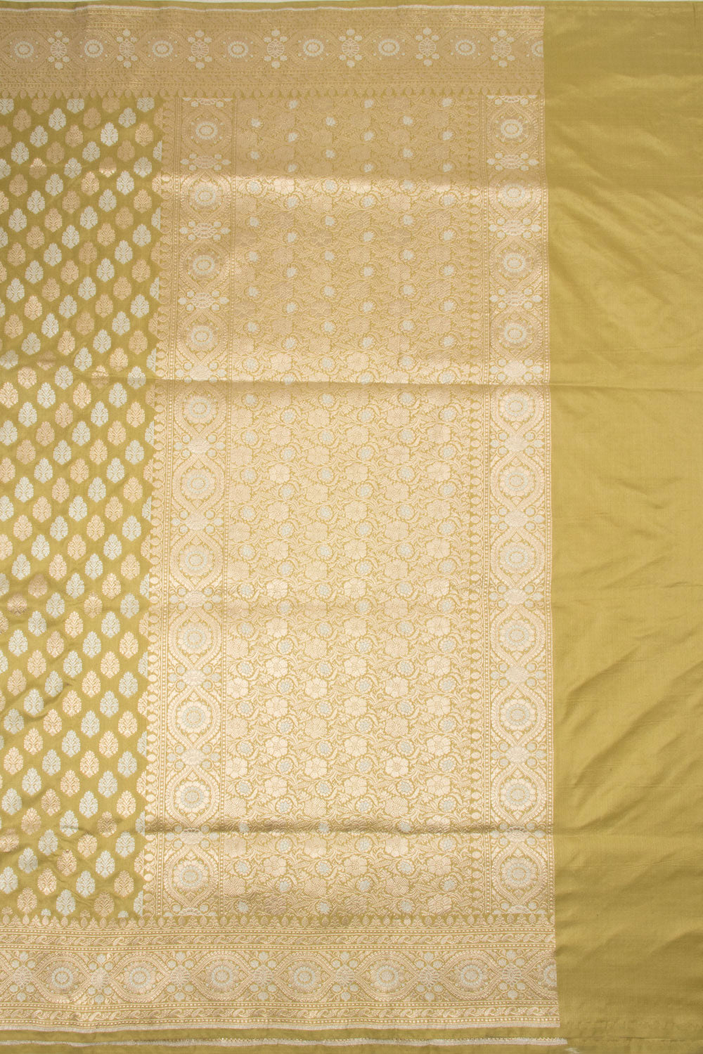 Light Olive Green Handloom Banarasi Katan Silk Saree 10063207