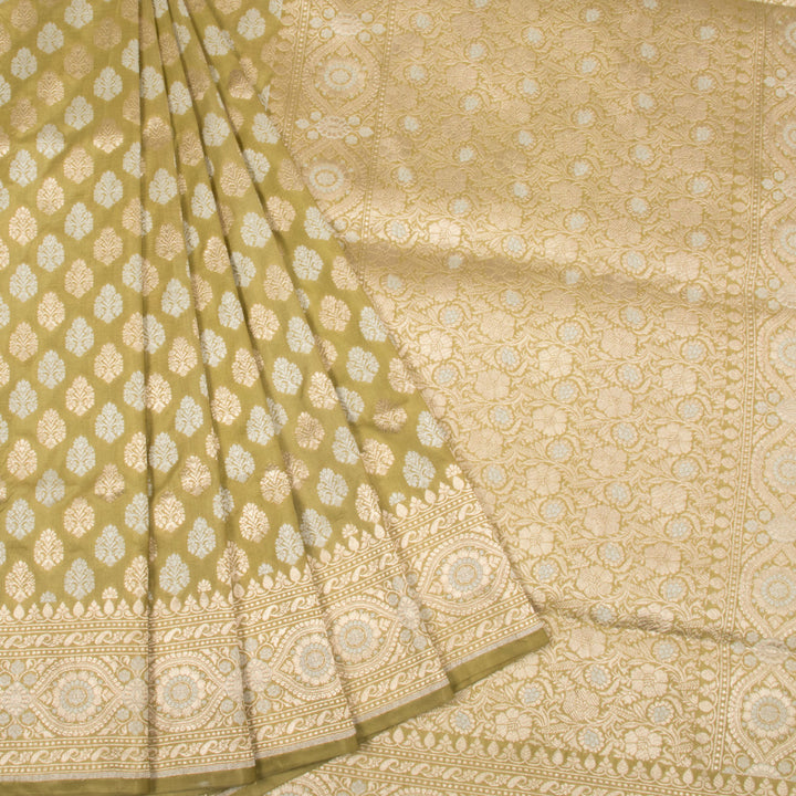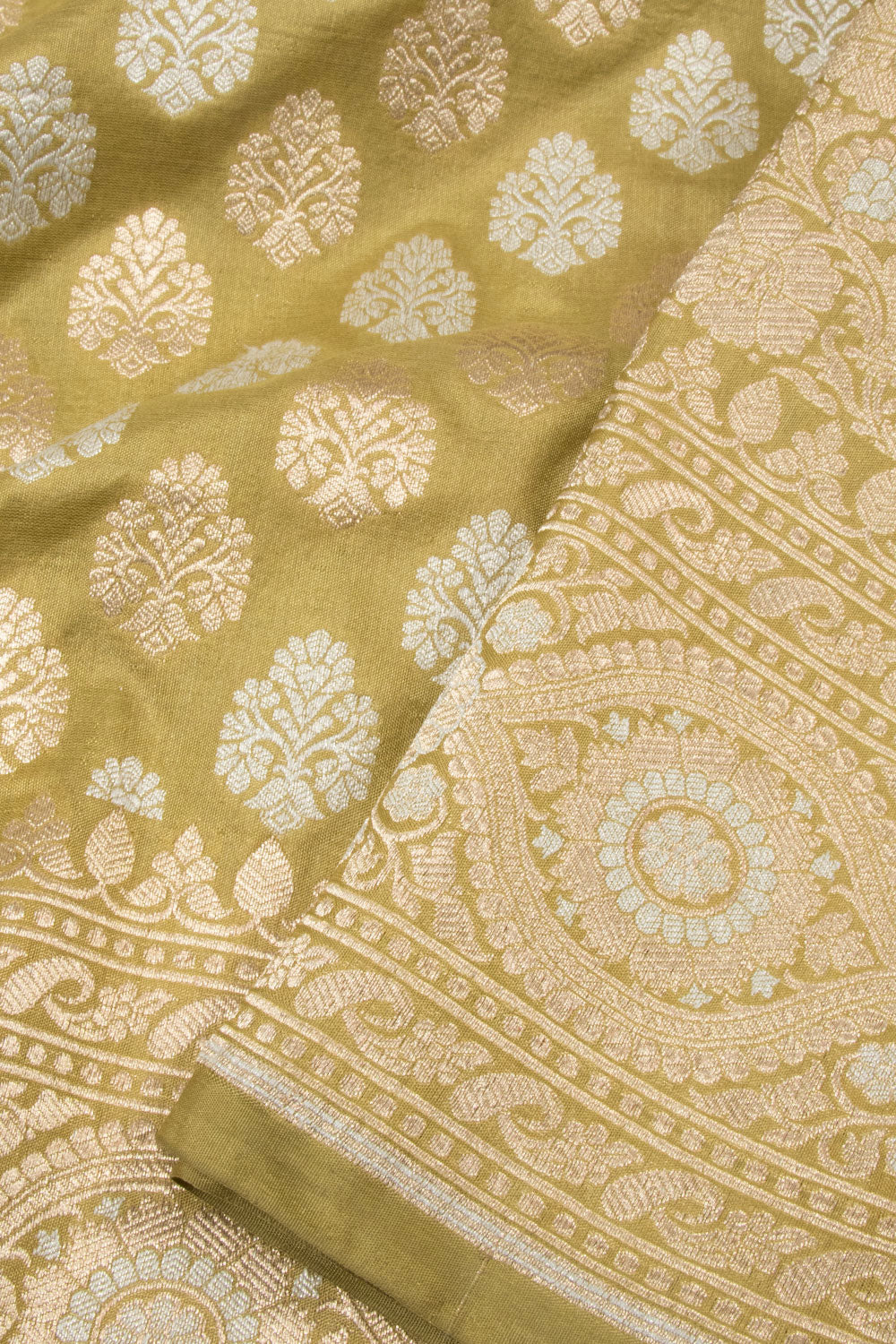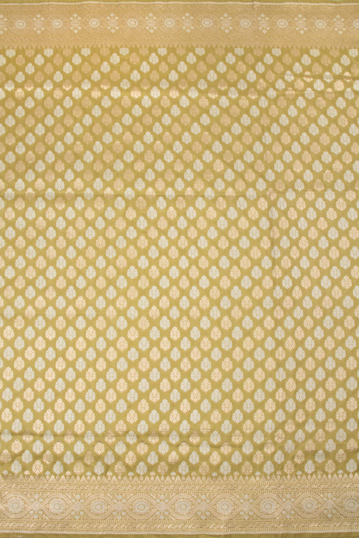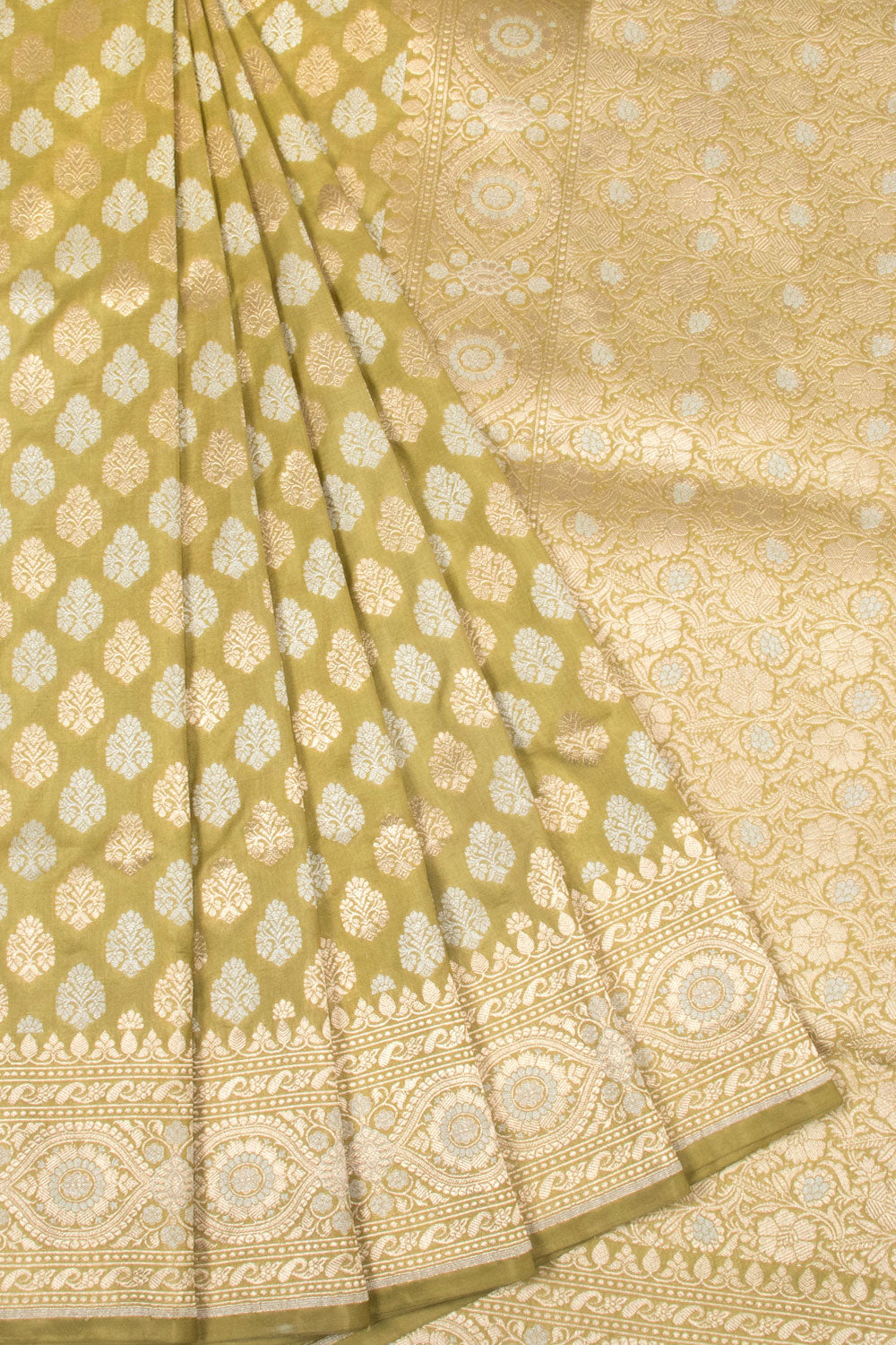Light Olive Green Handloom Banarasi Katan Silk Saree 10063207