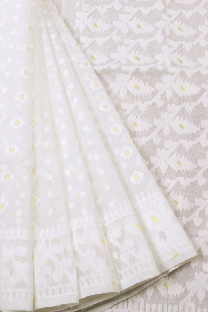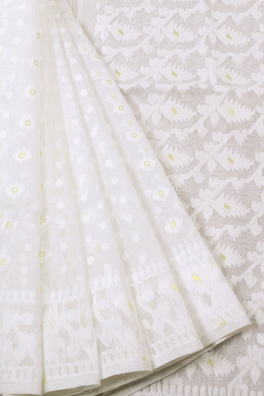 White Handloom Jamdani Style Jamdani Cotton Saree 10064015