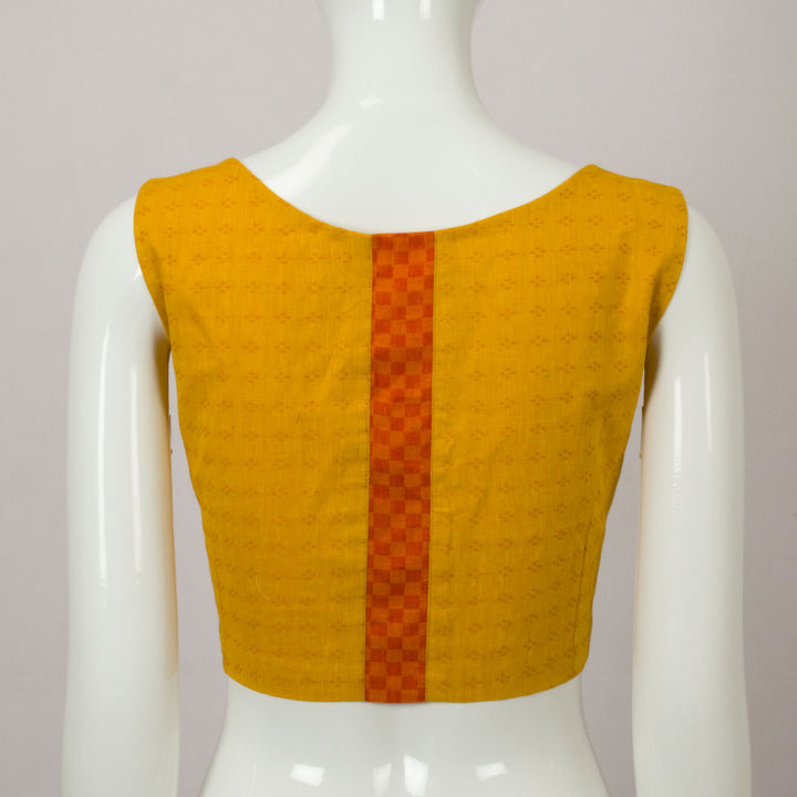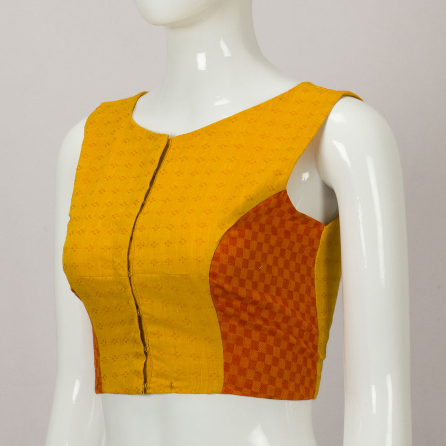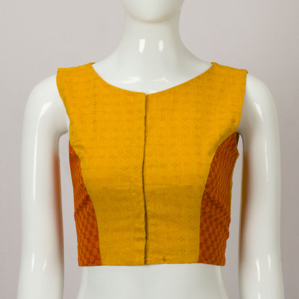 Yellow Handwoven Sleeveless Patchwork Blouse This timeless blouse is perfect for any occasion, with a classic look that'll never go out of style.