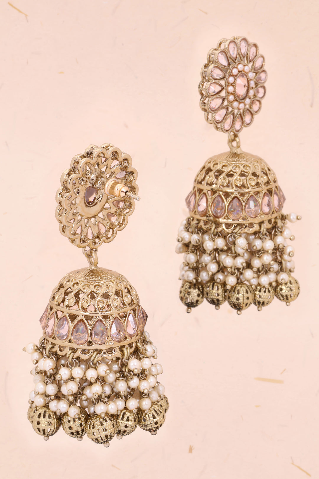 Handcrafted Peach Stones Cluster Beads Drop Jhumka Earrings 10069657