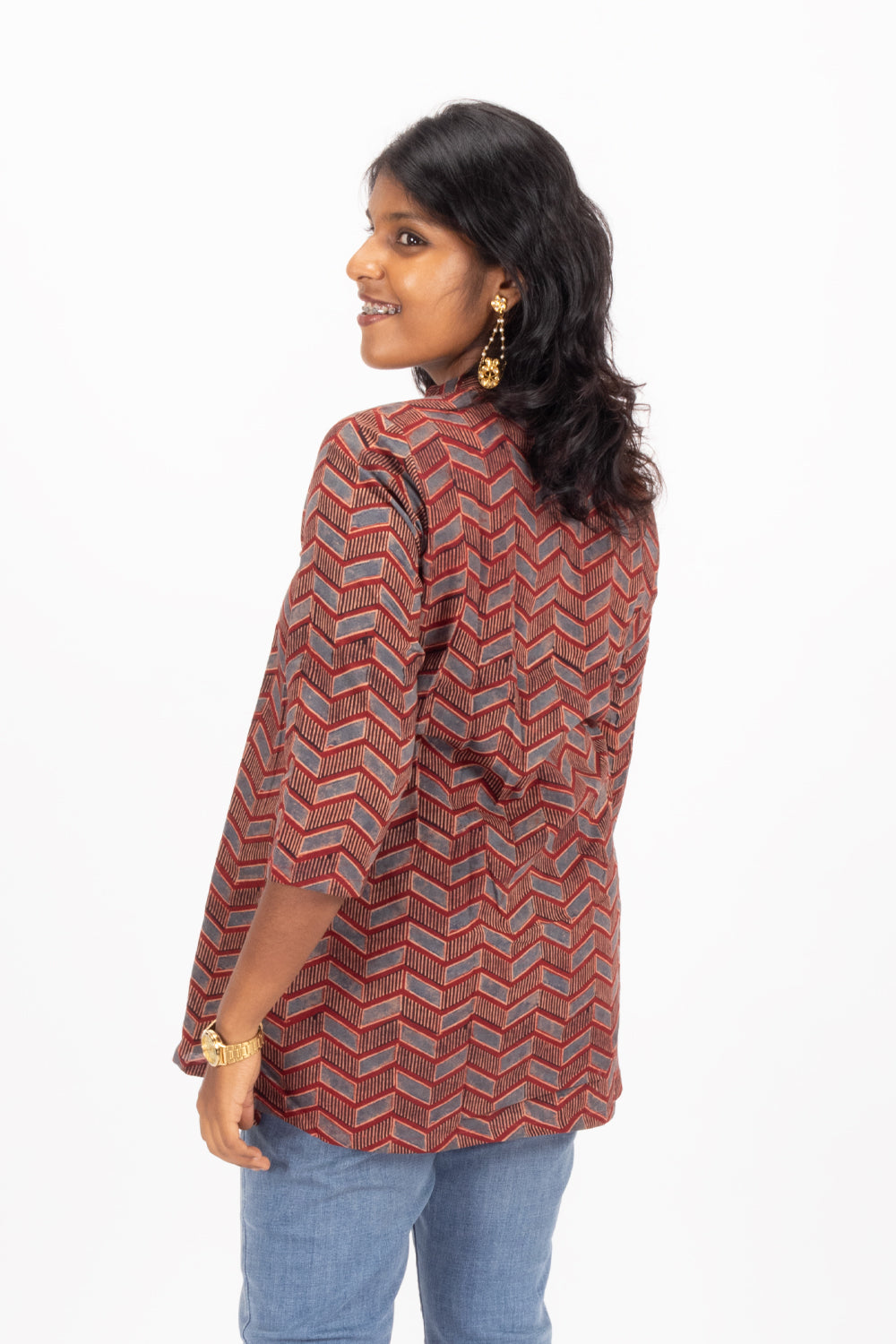 Maroon Ajrakh Printed Cotton Kurti 10072402