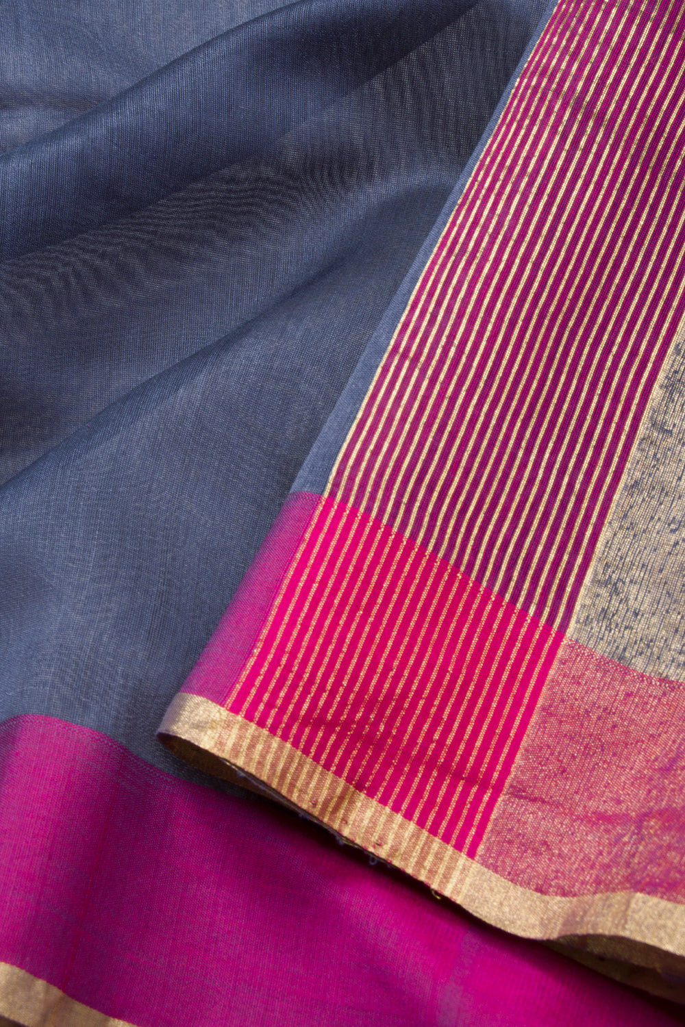 Grey Handloom Chanderi Saree With Ganga Jamuna Border 10073080