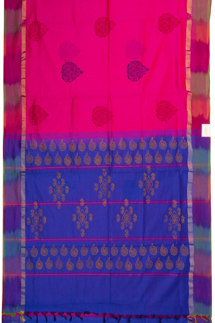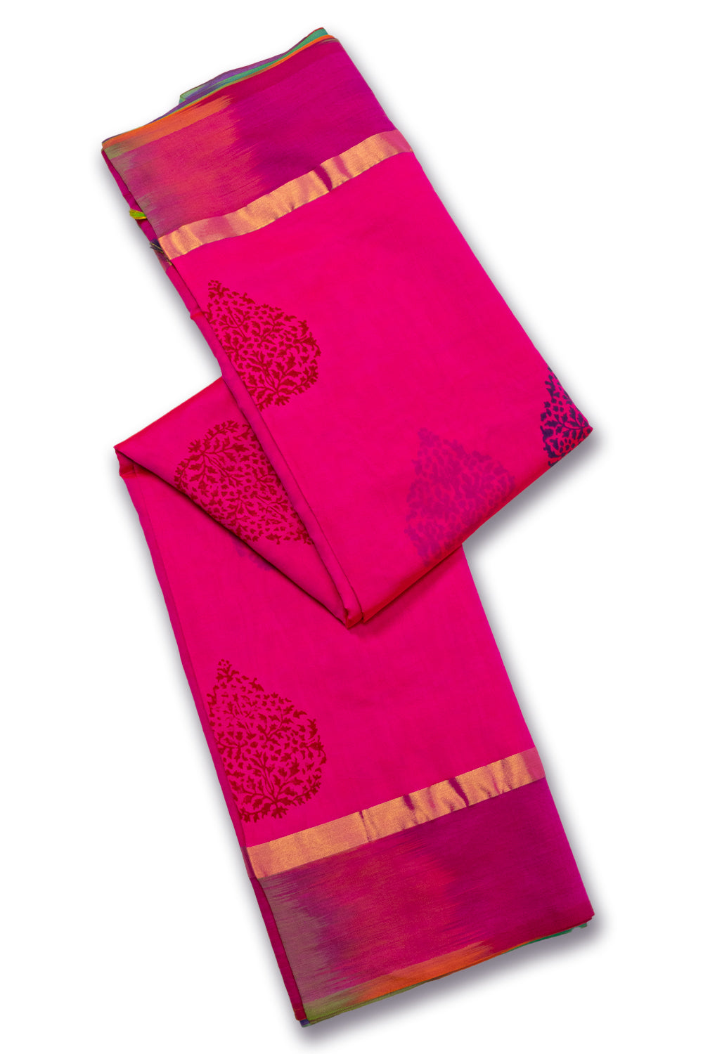 Add a bold splash of color to your wardrobe with this Magenta South Silk Cotton Saree. Combining the luxurious sheen of silk with the breathable comfort of cotton, it offers a perfect balance of elegance and ease. The vibrant magenta hue makes it an ideal choice for festive occasions and special events, ensuring you stand out with grace and style. Elevate your traditional look effortlessly with this stunning saree.