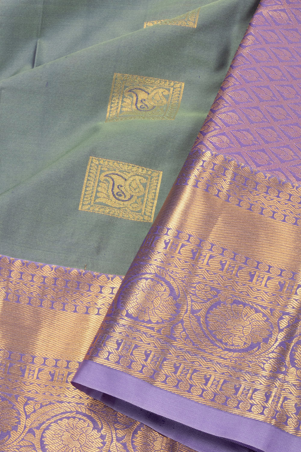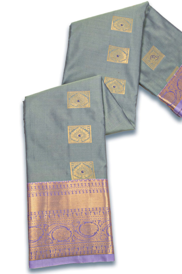 Grey Kanjivaram Vegan Silk Saree with Contrast Pallu 10074877