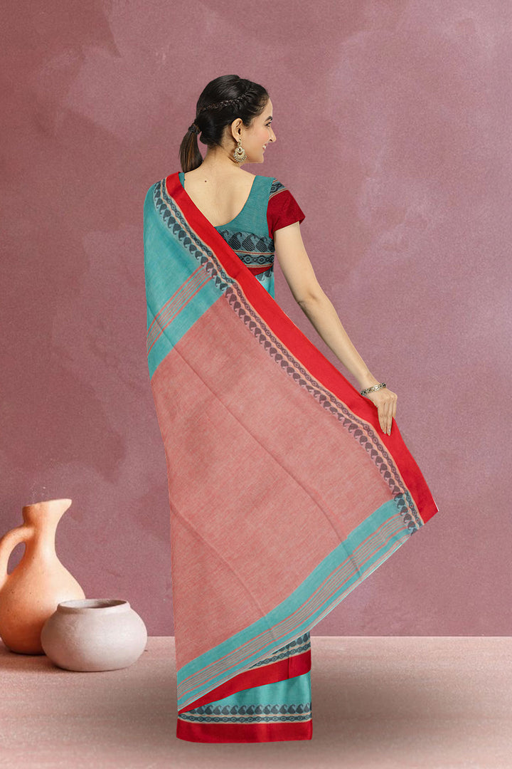 The Shantipur weave comes from the Shantipur region of West Bengal, known for its centuries-old handloom tradition. These sarees are woven using fine cotton yarns and feature a balanced mix of plain bodies with sleek borders, often inspired by nature or traditional geometric patterns. The weaving is done on pit looms with great precision, resulting in a compact, refined finish that feels soft yet durable.