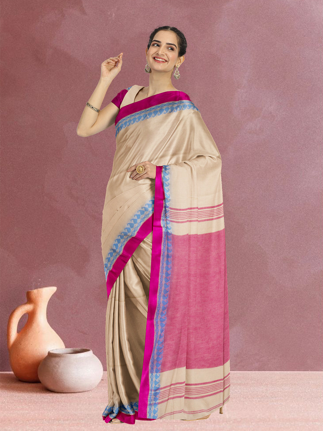 Cream Shantipur Tant Bengal Cotton Saree 10074976