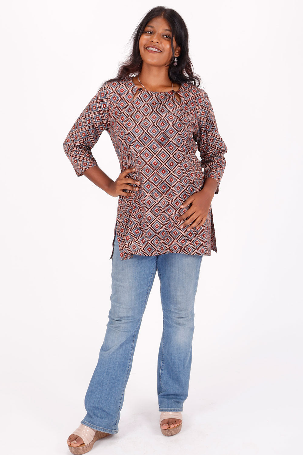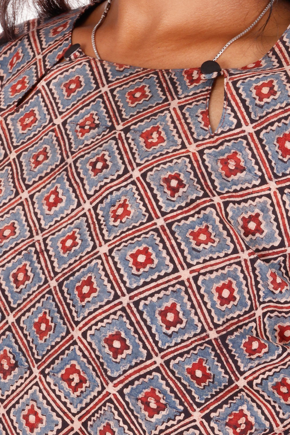 Arctic Blue Ajrakh Printed Cotton Kurti 10072051