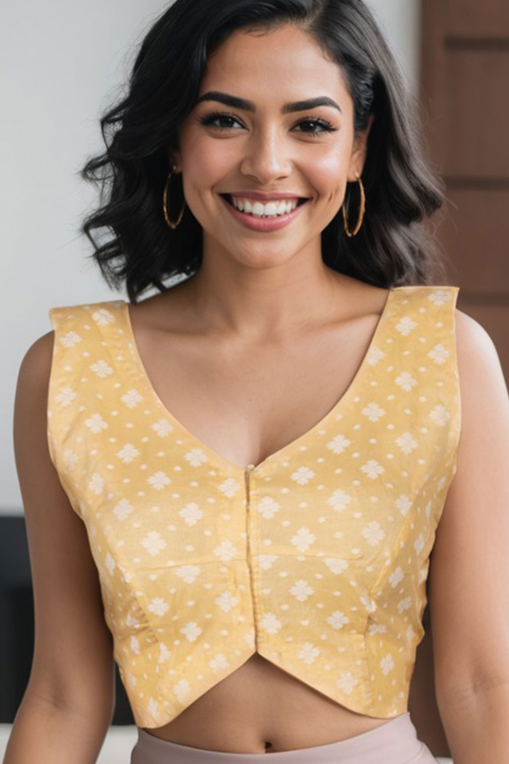 Banarasi weaving is known for its intricate floral and paisley motifs, often woven using gold or silver zari. When adapted to cotton, the result is a saree blouse that’s lighter and more wearable, yet still retains the elegance and visual depth of Banarasi artistry.