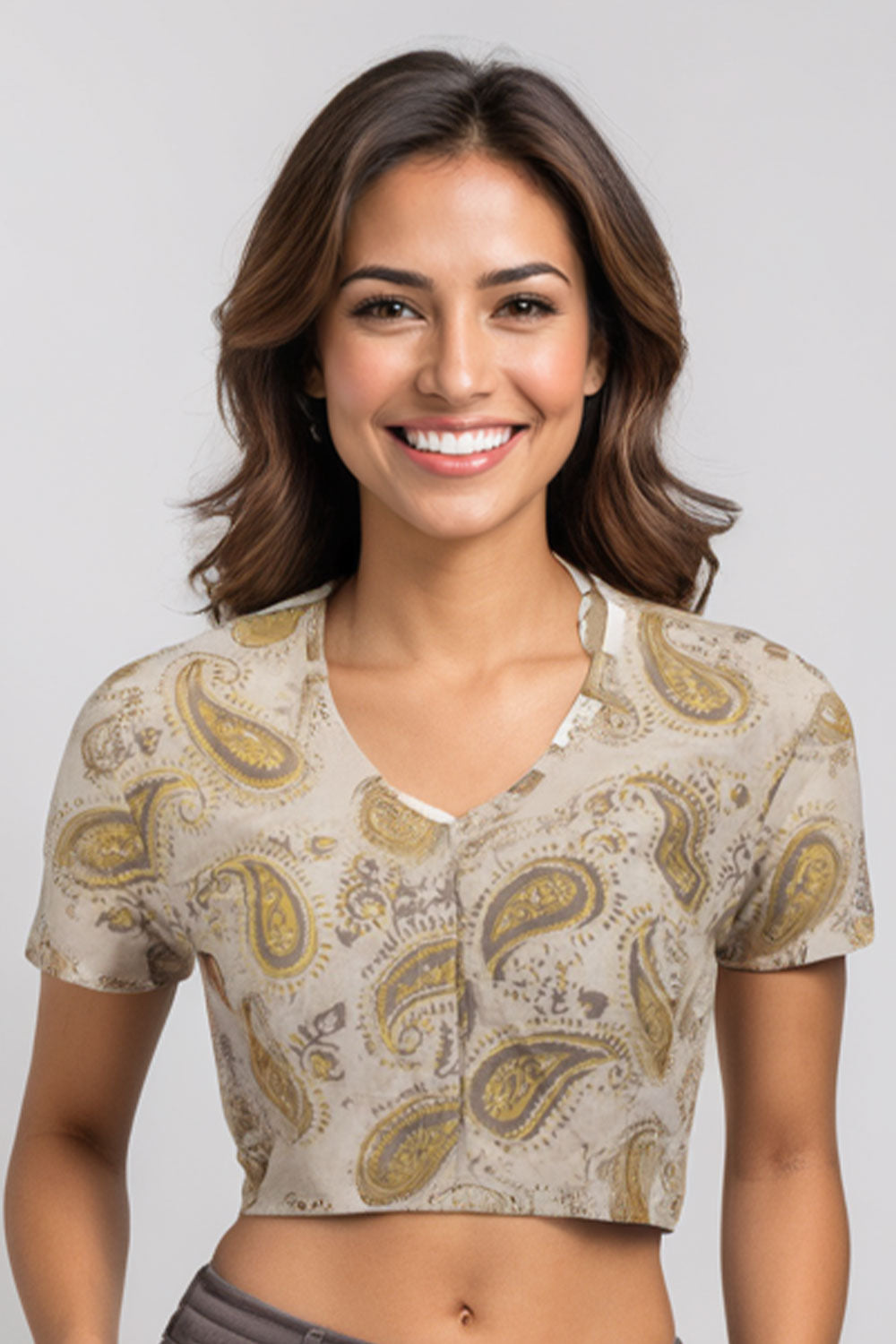 Beige Hand Block Vanaspathi Printed Cotton Blouse 10074479