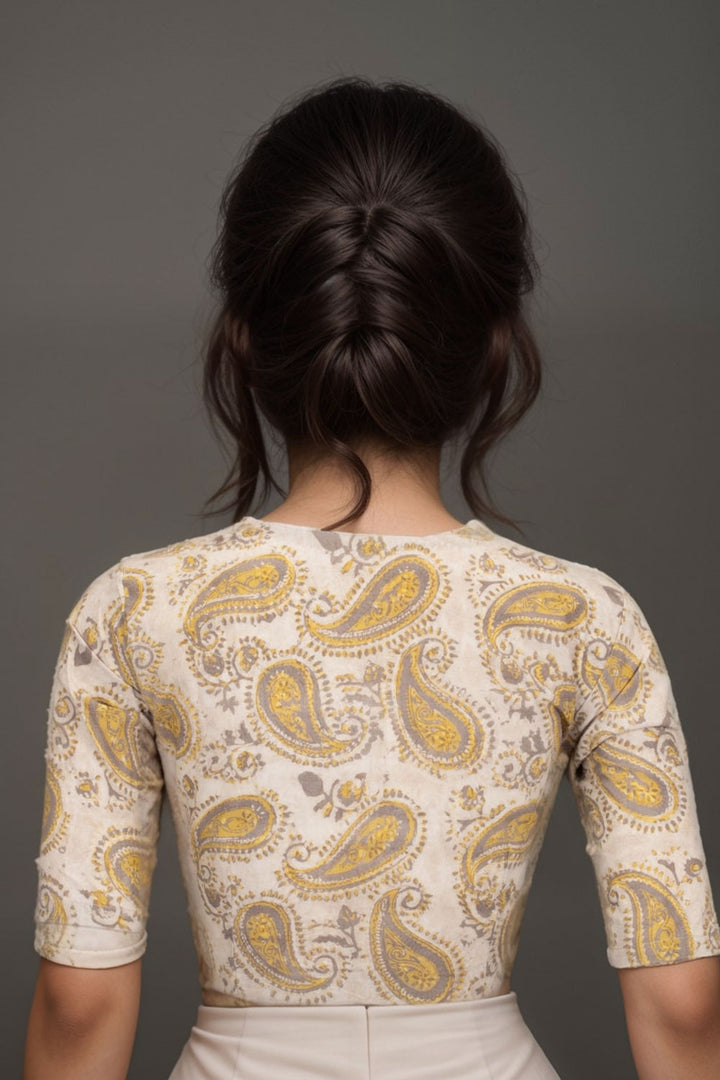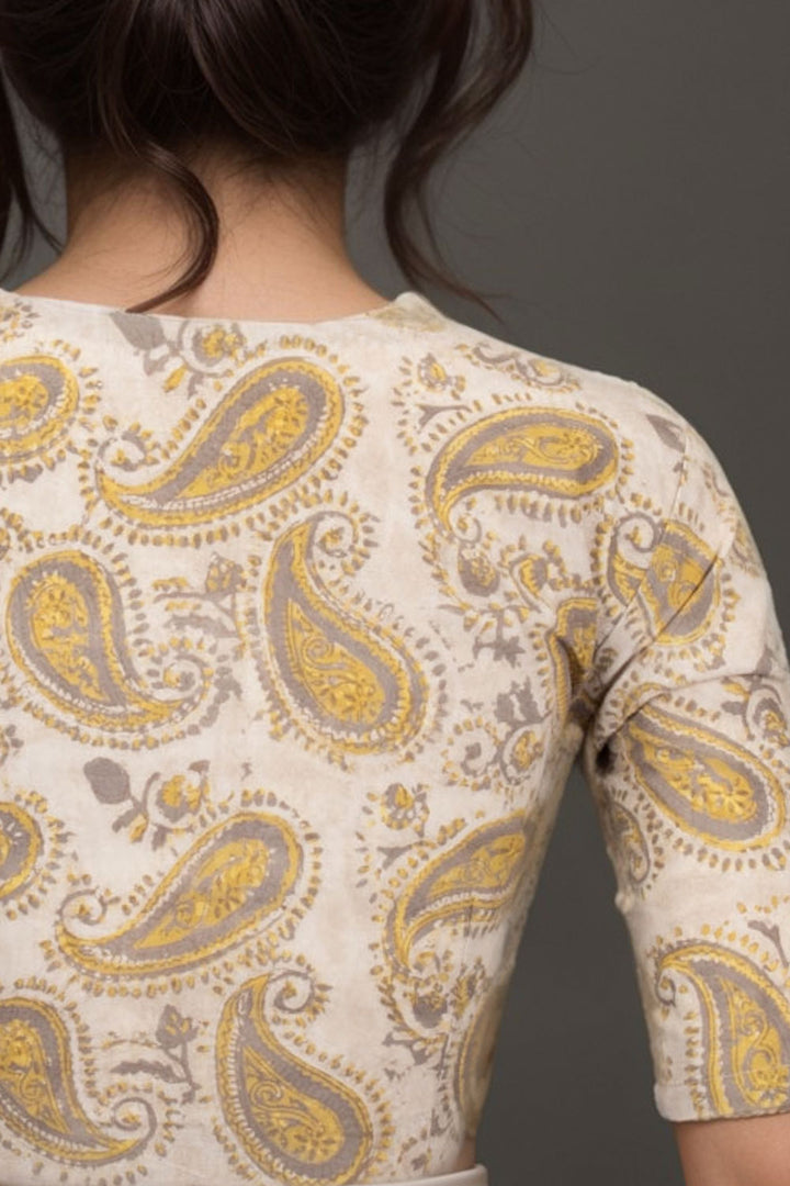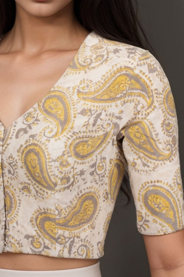 Beige Hand Block Vanaspathi Printed Cotton Blouse 10074481
