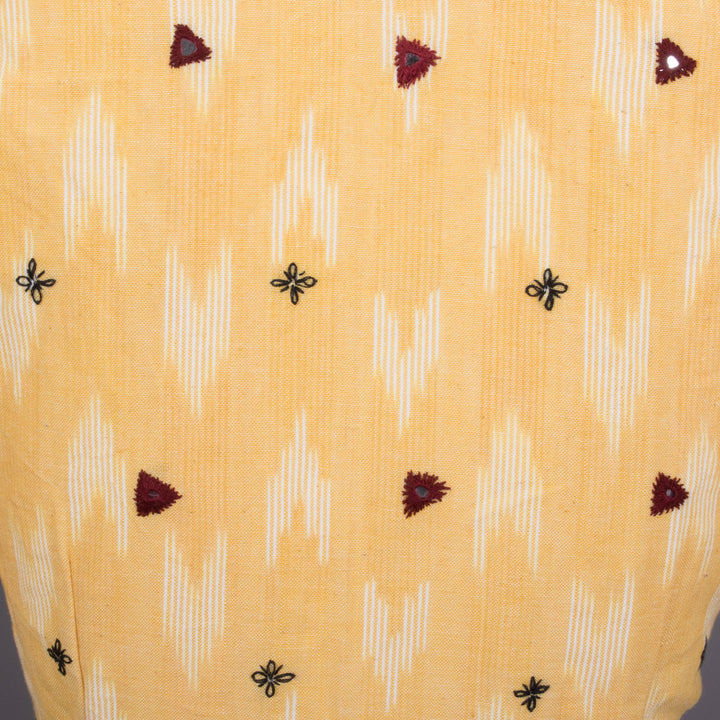 Elevate your wardrobe with our Beige Ikat Mirror Work Embroidered Cotton Blouse. Hand-embroidered with ikat cotton and finished with delicate mirror work, this blouse radiates elegance and charm. Perfect for any occasion, our blouse combines intricate details with comfort.