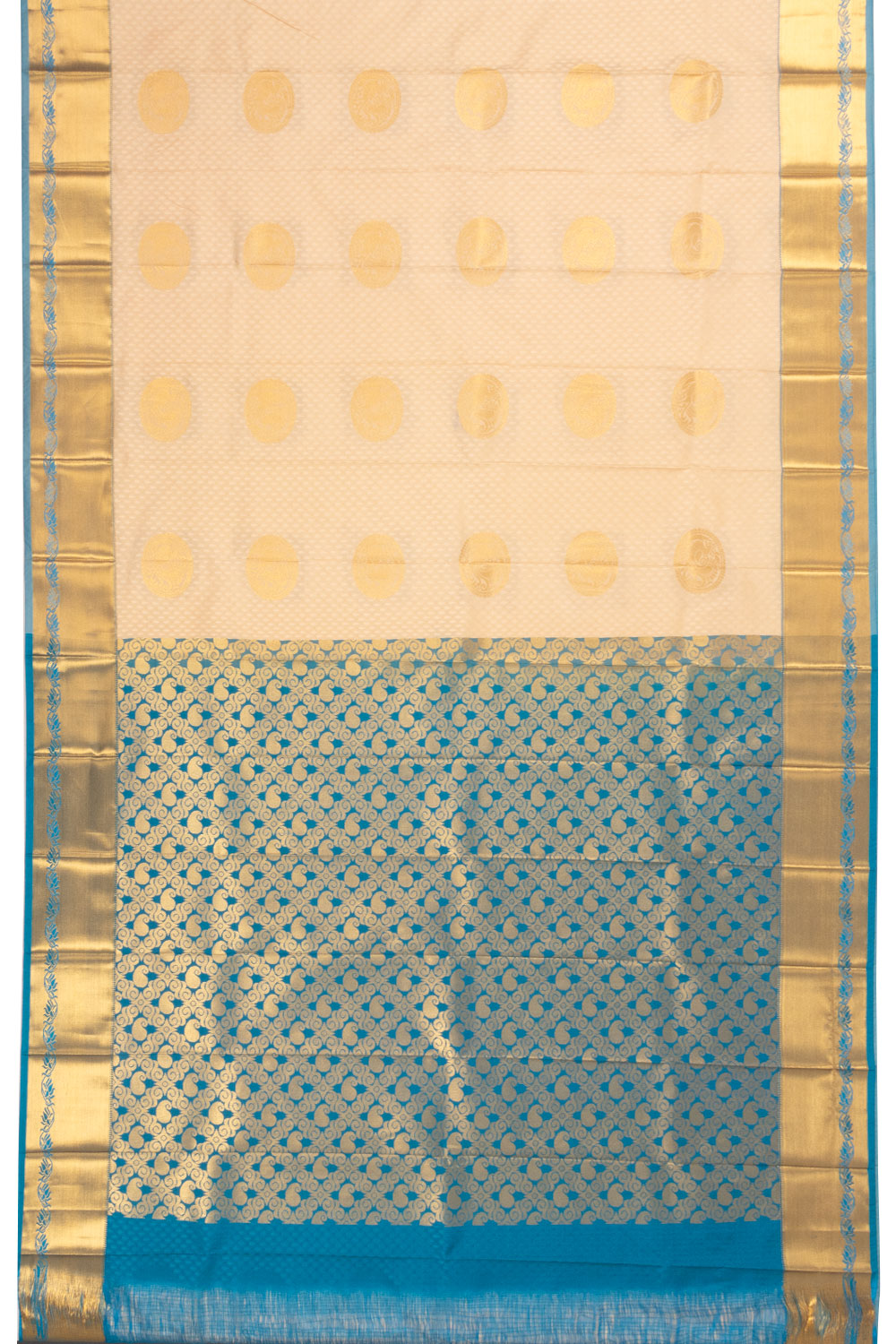 Beige Kanjivaram Vegan Silk Saree with Contrast Pallu 10073894