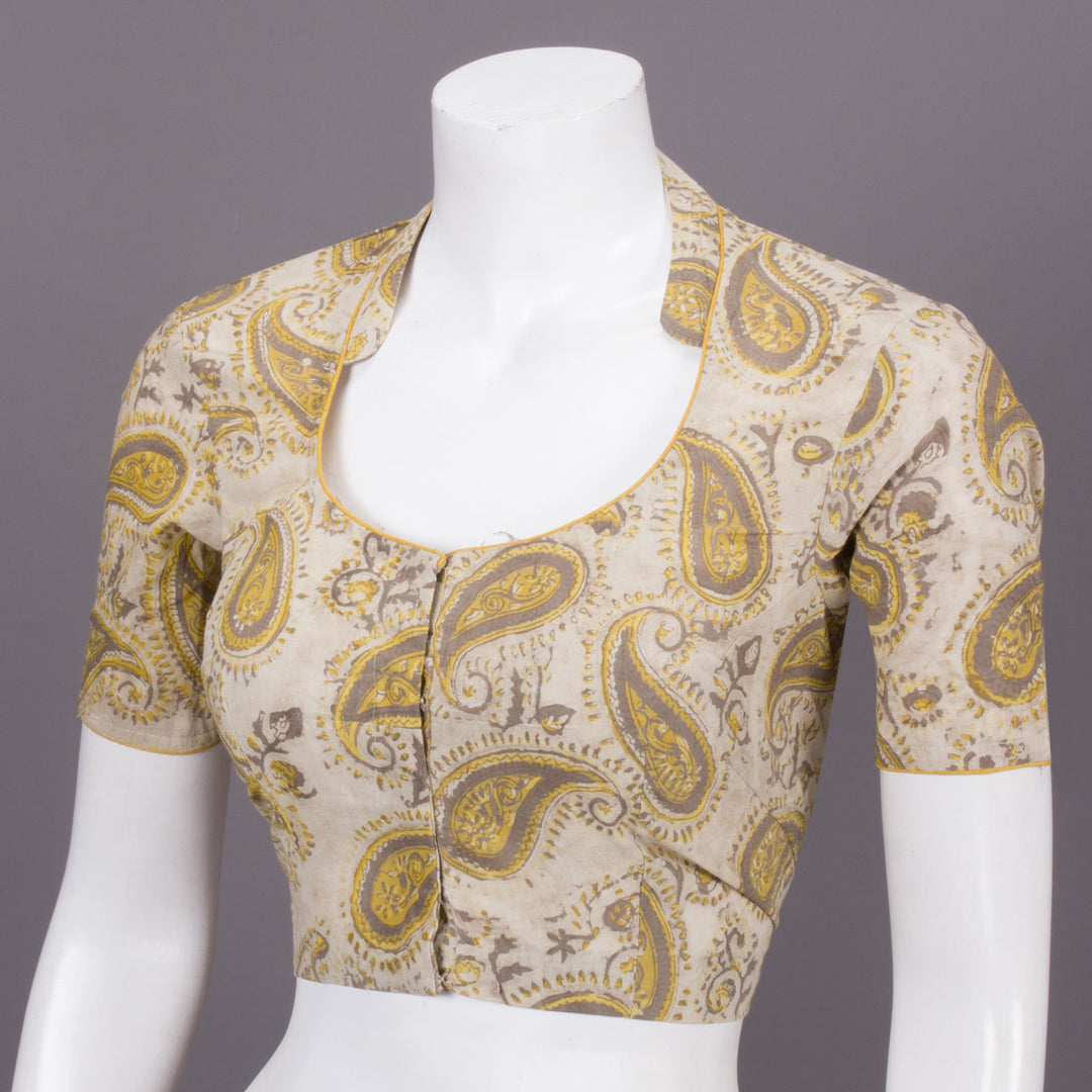 Beige Vanaspathi Printed Cotton Blouse 10073352