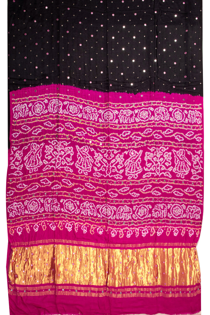 Black Bandhani Gajji Silk Saree with Lagdi Patti Zari Pallu 10073067