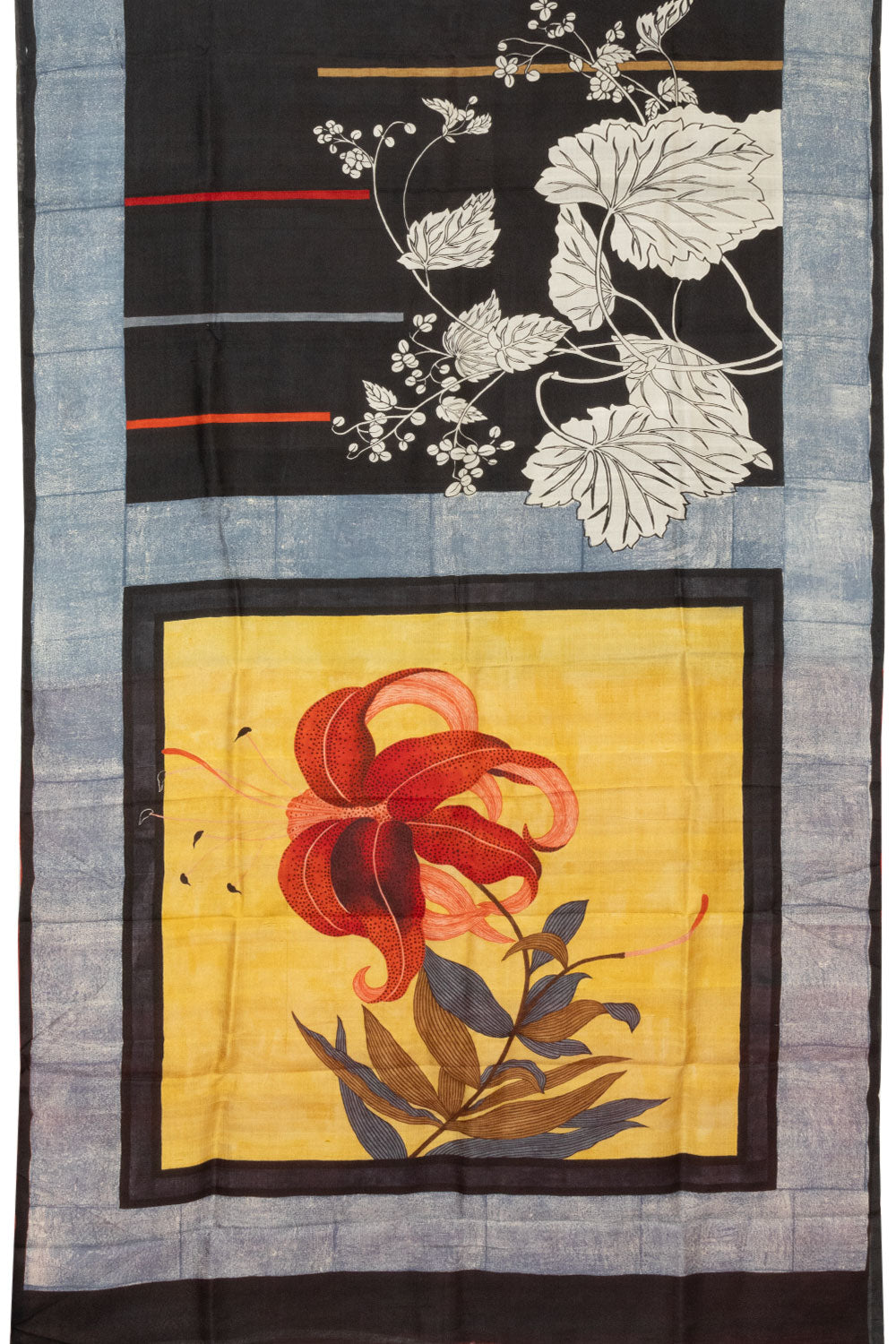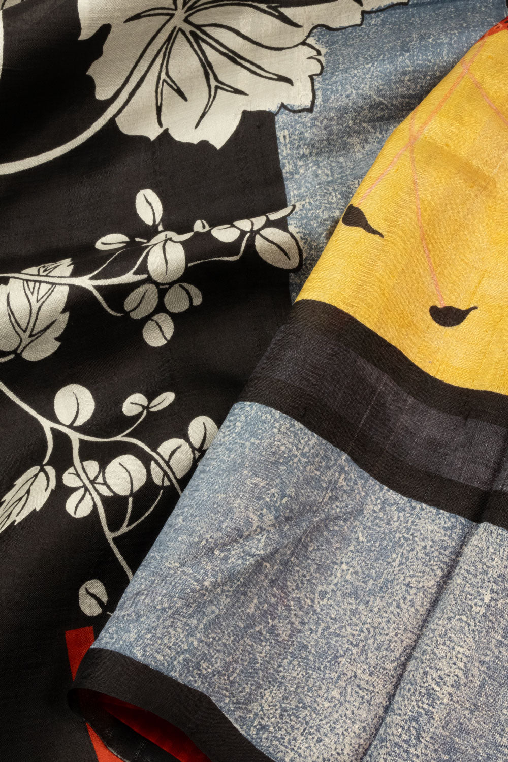 This charming black Mulberry hand painted silk saree offers an understated yet elegant look. Crafted with fine silk, it features hand painted details to create a unique, sophisticated, and timeless style. Perfect for any special occasion!