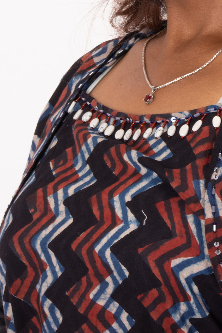 - Sleeve length - 18 In, Full length - 46 In, Bust - 38 In, Shoulder - 16 In, Hip - 48 In
