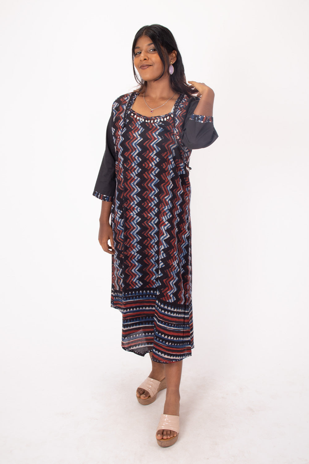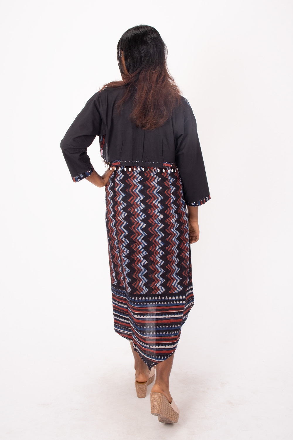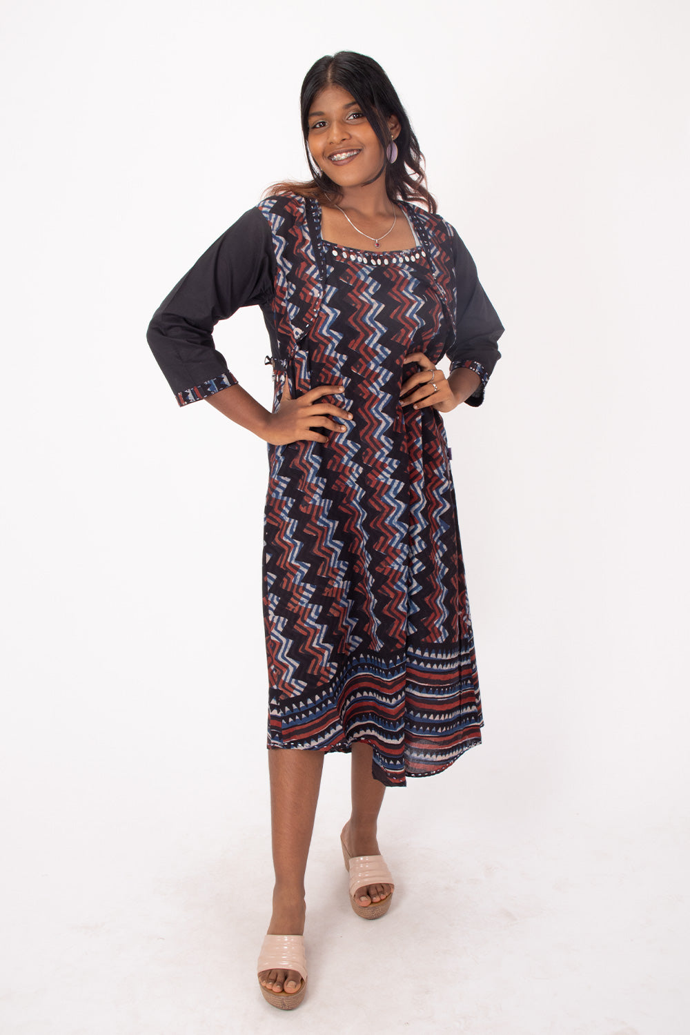 This stunning black handcrafted cotton dress is a must-have for any wardrobe. Made from high-quality cotton, it is both comfortable and stylish. The intricate handcrafted details add a unique touch to this classic piece. Perfect for any occasion, it's a versatile and timeless choice.