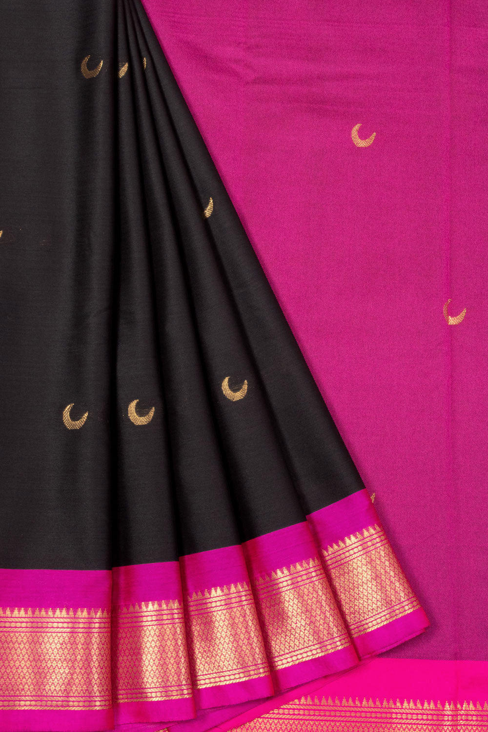 Black Handloom Chandrakon Paithani Silk Saree 10073626