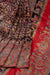 Experience the elegance of the Black Handloom Kashmiri Kani Silk Saree, featuring a detailed border that depicts a majestic Royal Procession with chariots, umbrellas, flag-bearing soldiers, elephants, camels, and horses. Paired beautifully with a contrasting red brocade blouse, this saree brings timeless tradition and regal charm to your wardrobe.