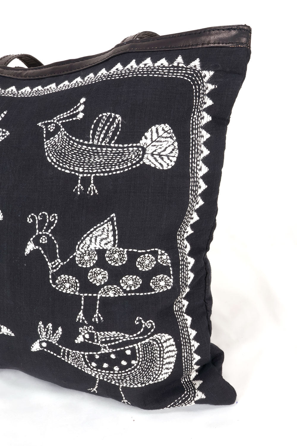 This stylish black handbag by Black Kantha Embroidery is embellished with a beautiful birds pattern. The refined embroidery and sturdy construction make this bag perfect for everyday use. Carry your essentials while showcasing your sense of fashion.