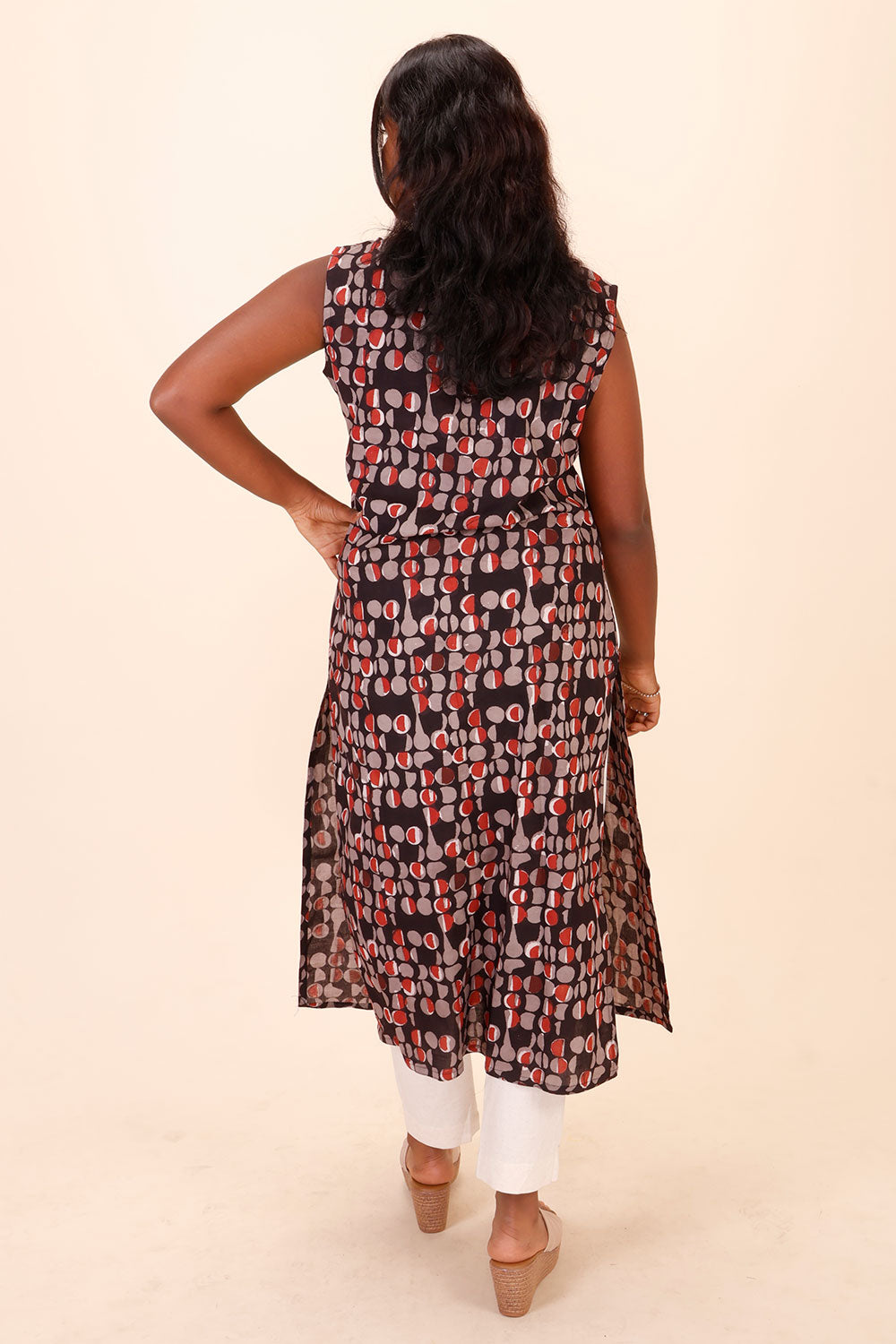 Black Sleevelees Jahota Printed Cotton Kurta 10071503