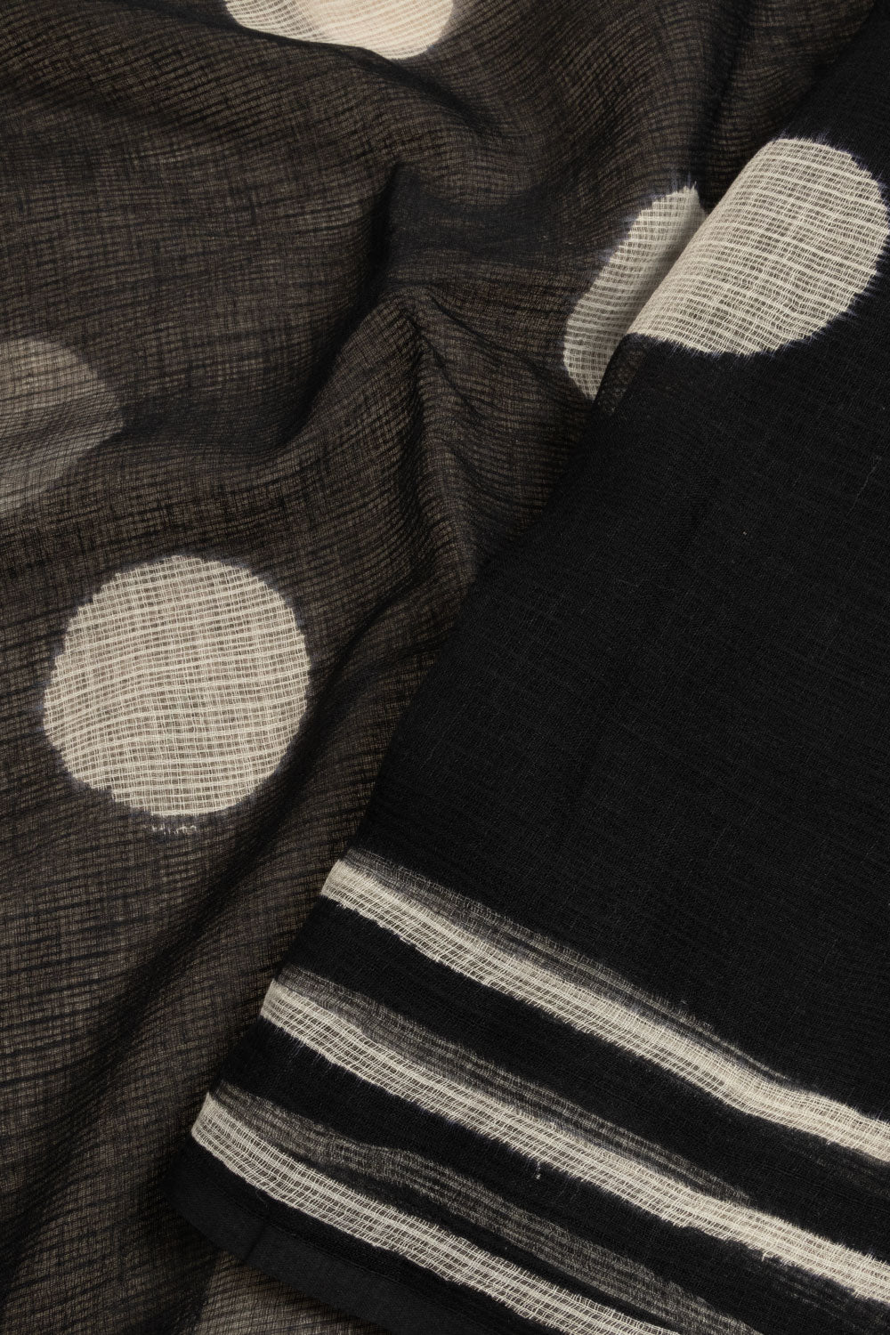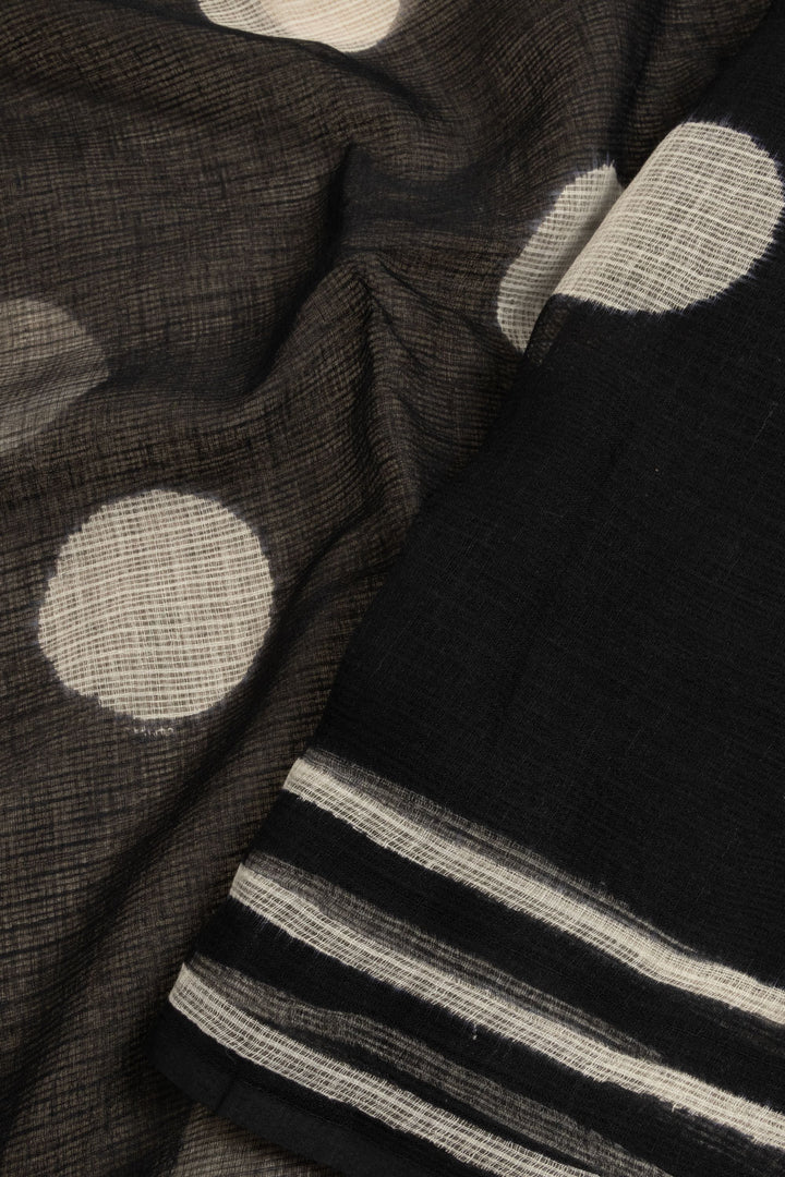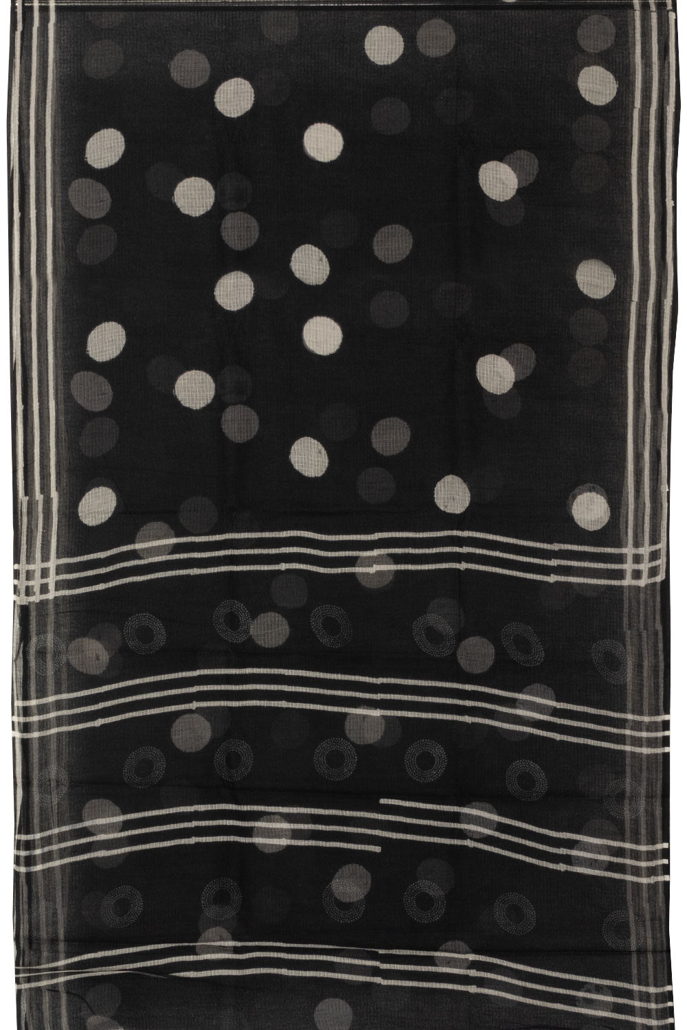 This gorgeous black Kota cotton saree is hand block printed with a Vanaspathi design. The lightweight fabric is comfortable and easy to drape, making it an ideal pick for any special occasions.