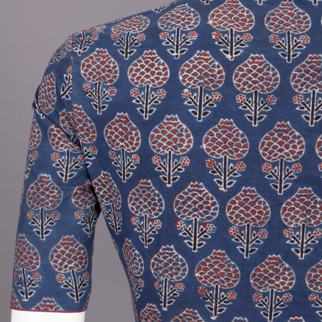 Blue Ajrakh Printed Cotton Blouse 10072502