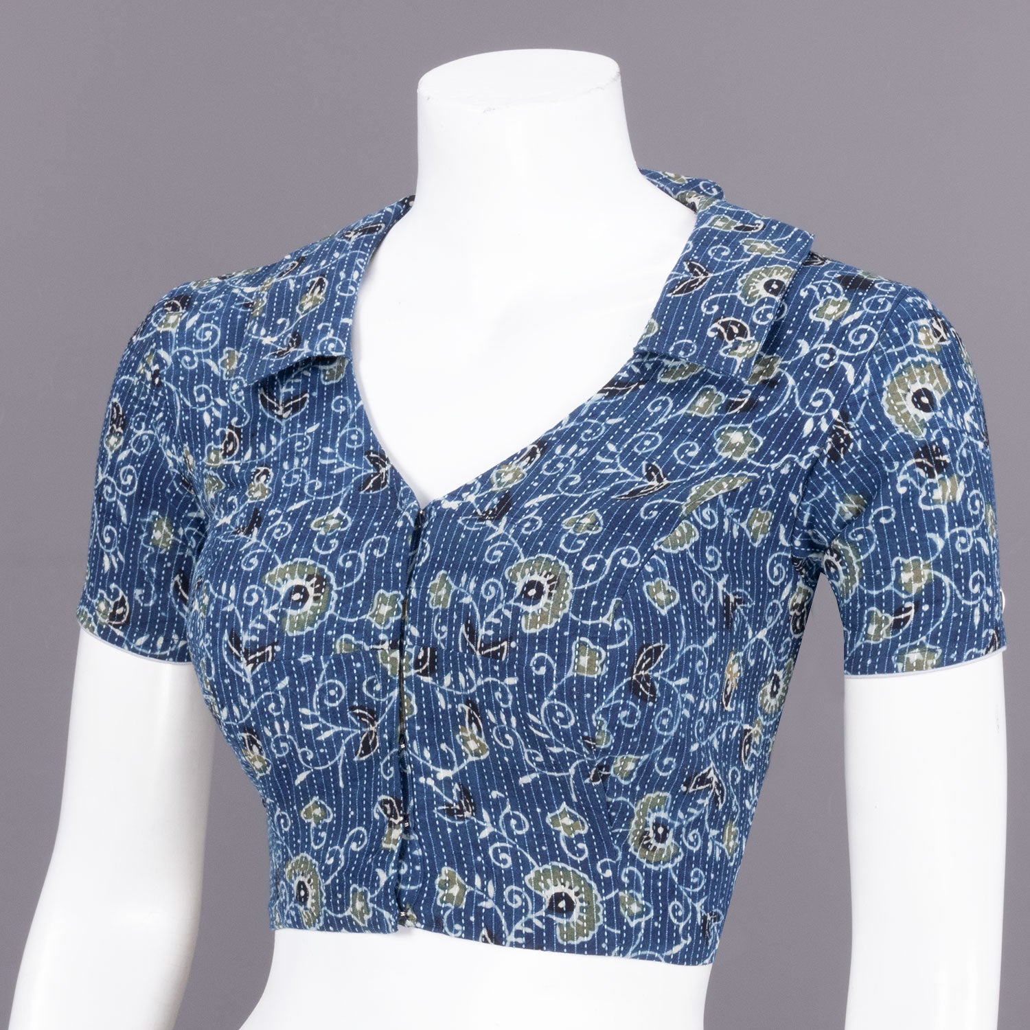 Blue Ajrakh Printed Cotton Blouse 10072503