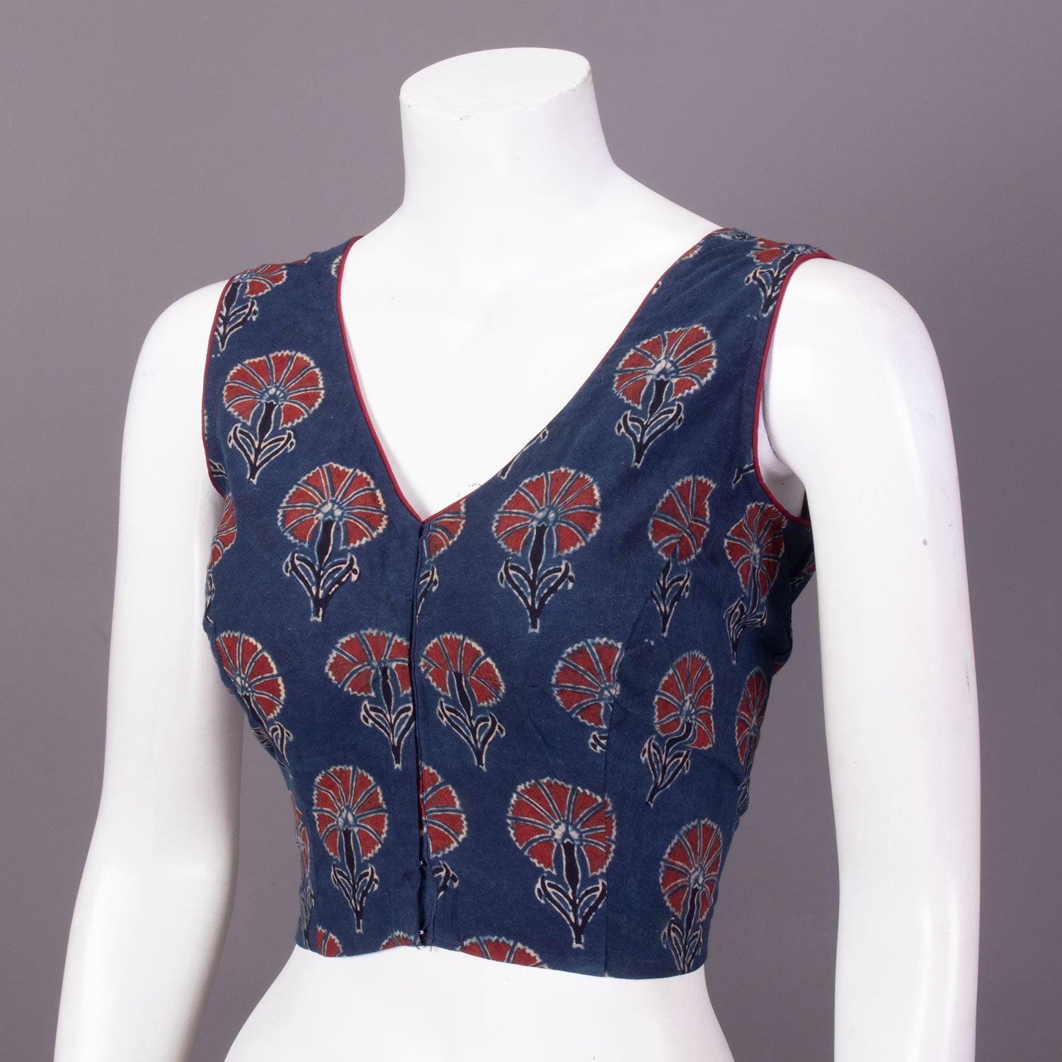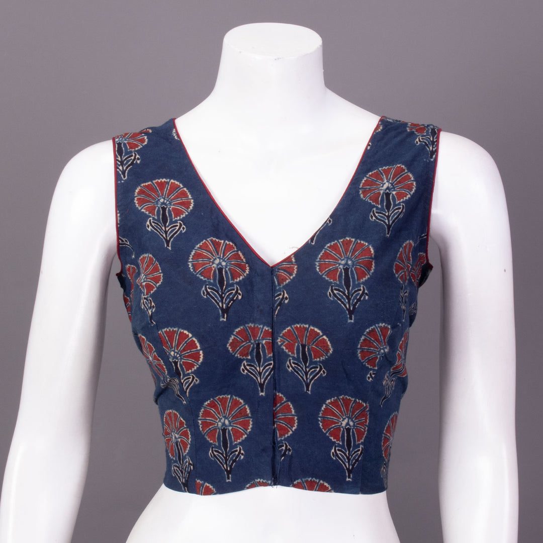 Blue Ajrakh Printed Cotton Blouse 10073379