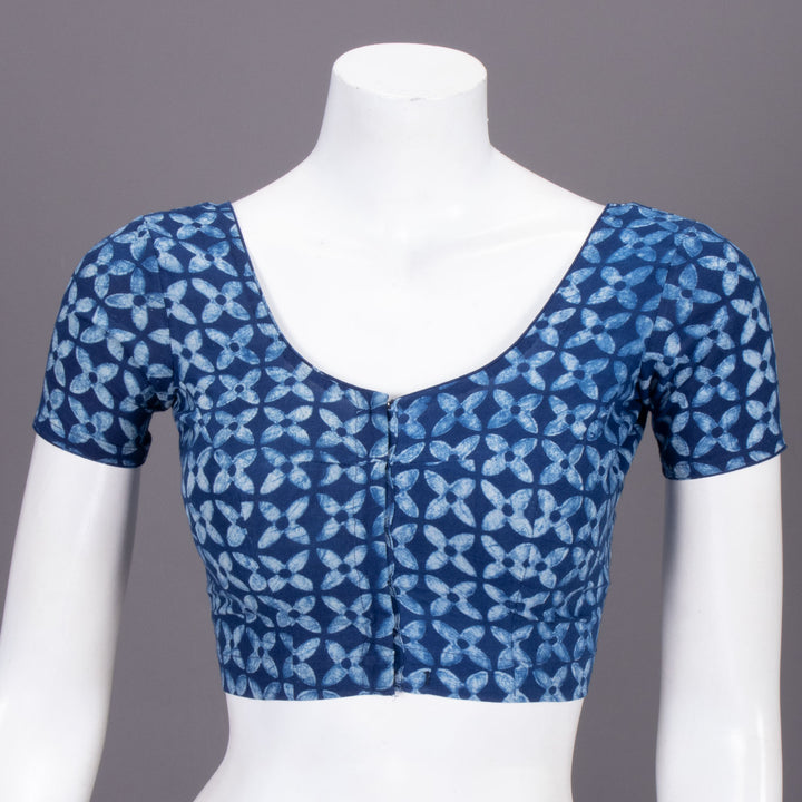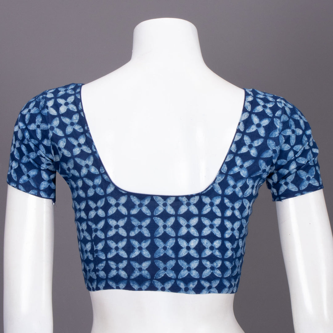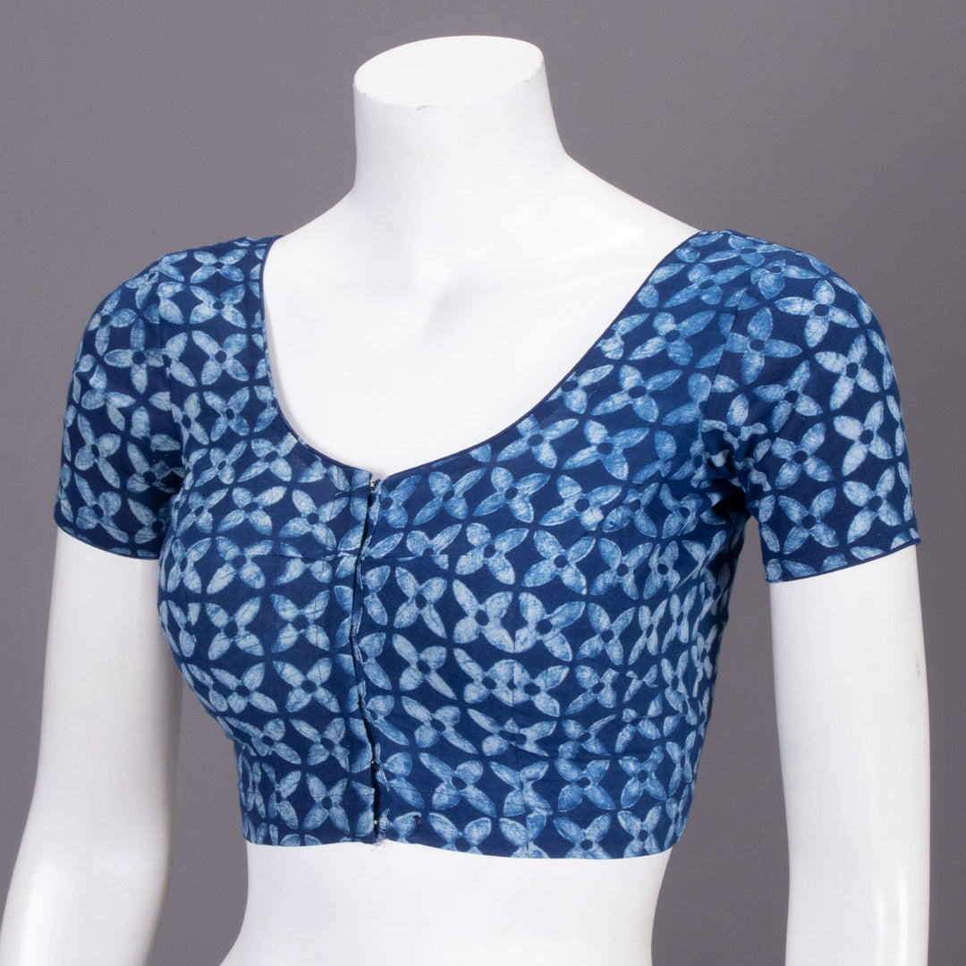 Blue Floral Motif Indigo Hand Block Print Cotton Blouse 10074573