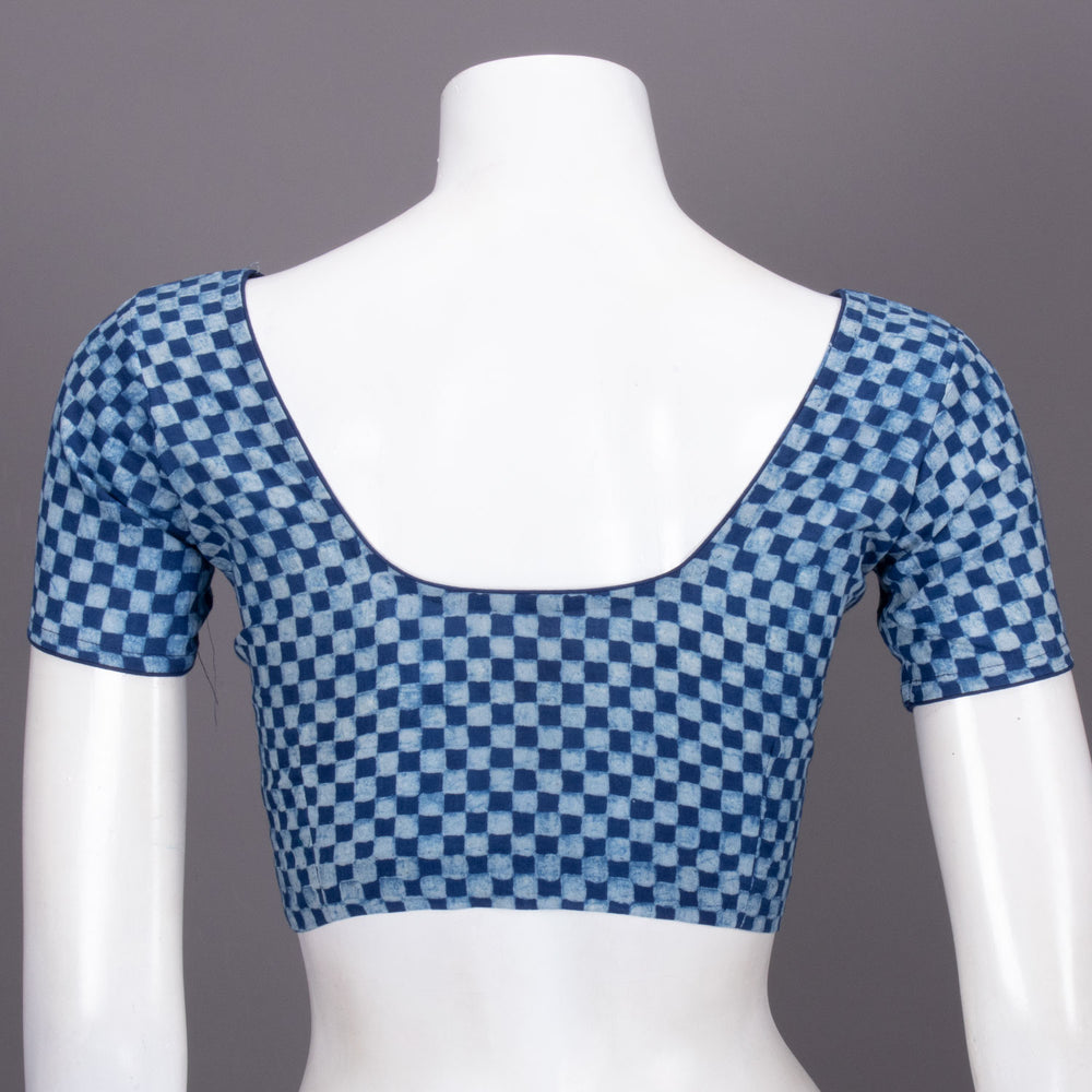 Blue Geometric Motif Indigo Hand Block Print Cotton Blouse 10074574
