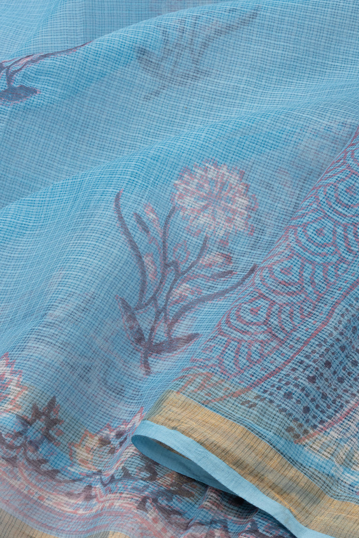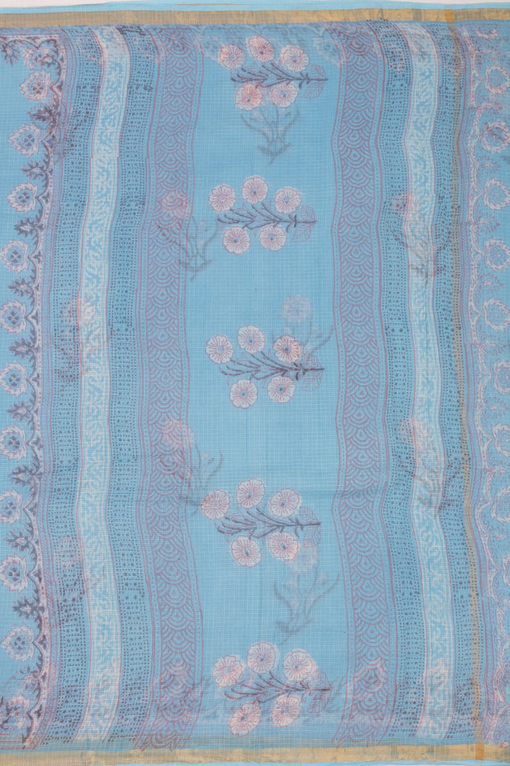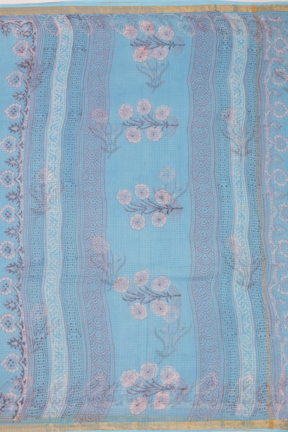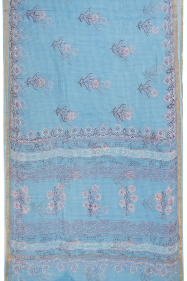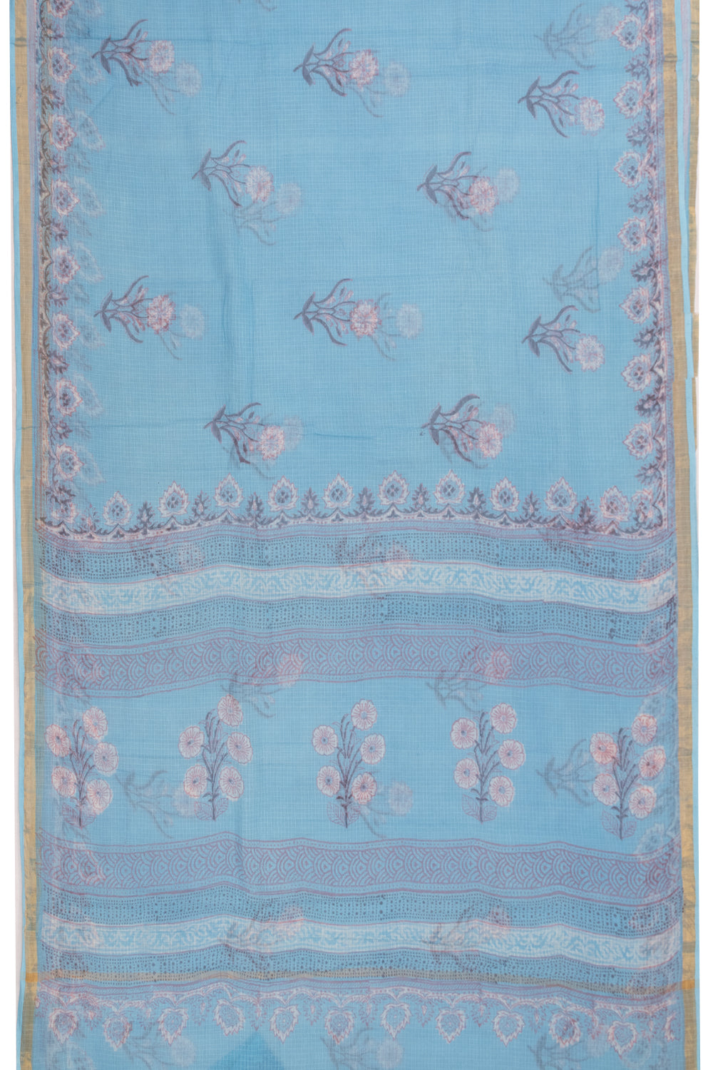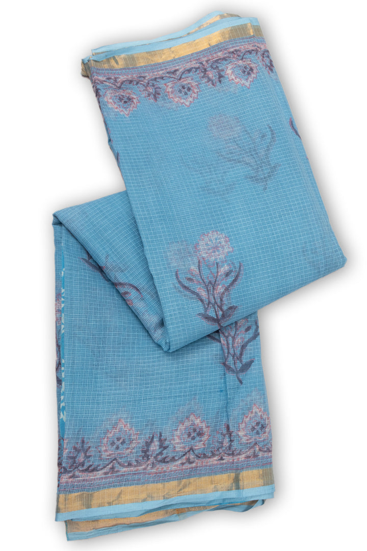 Blue Hand Block Print Kota Cotton Saree 10074167