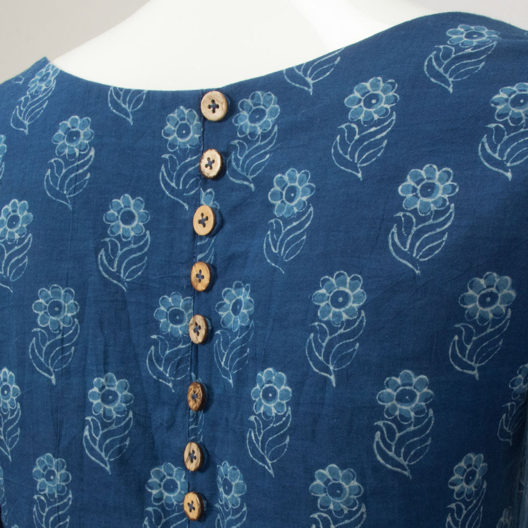 This beautiful, blue hand block-printed blouse is the perfect way to add a unique twist to your wardrobe. Made from light and breathable cotton, it's comfortable, stylish and sure to brighten up your everyday look.