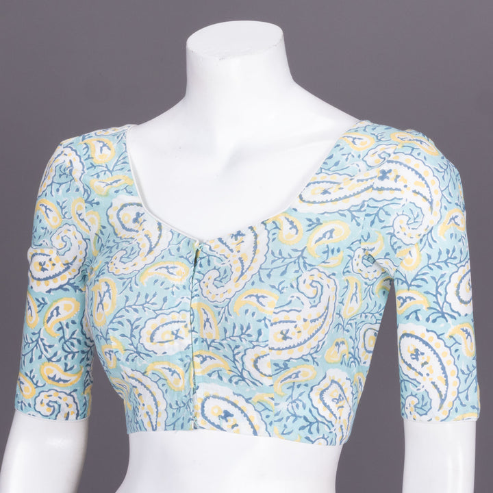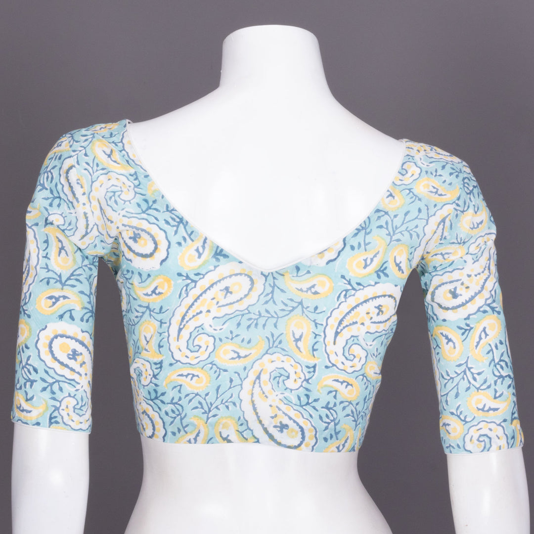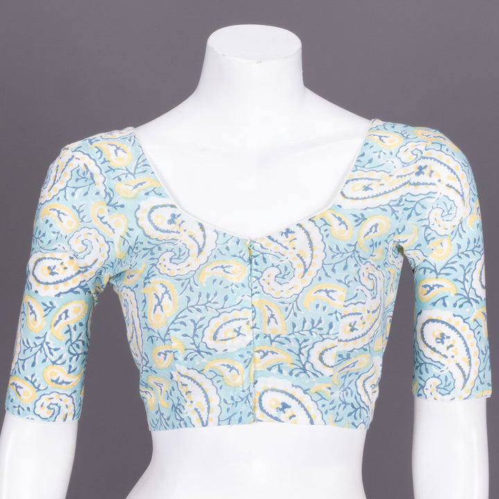 Blue Hand block printed Cotton Blouse 10072269