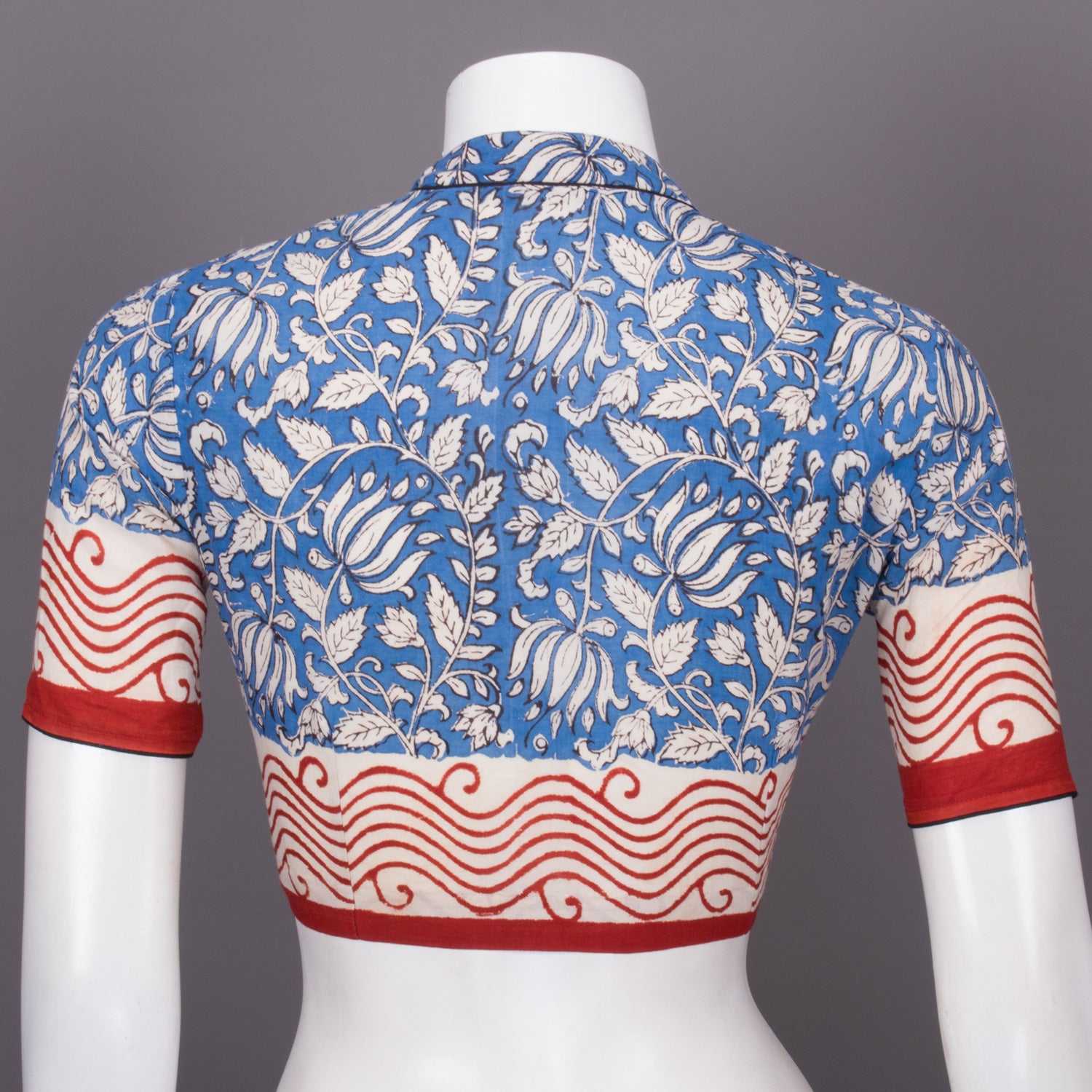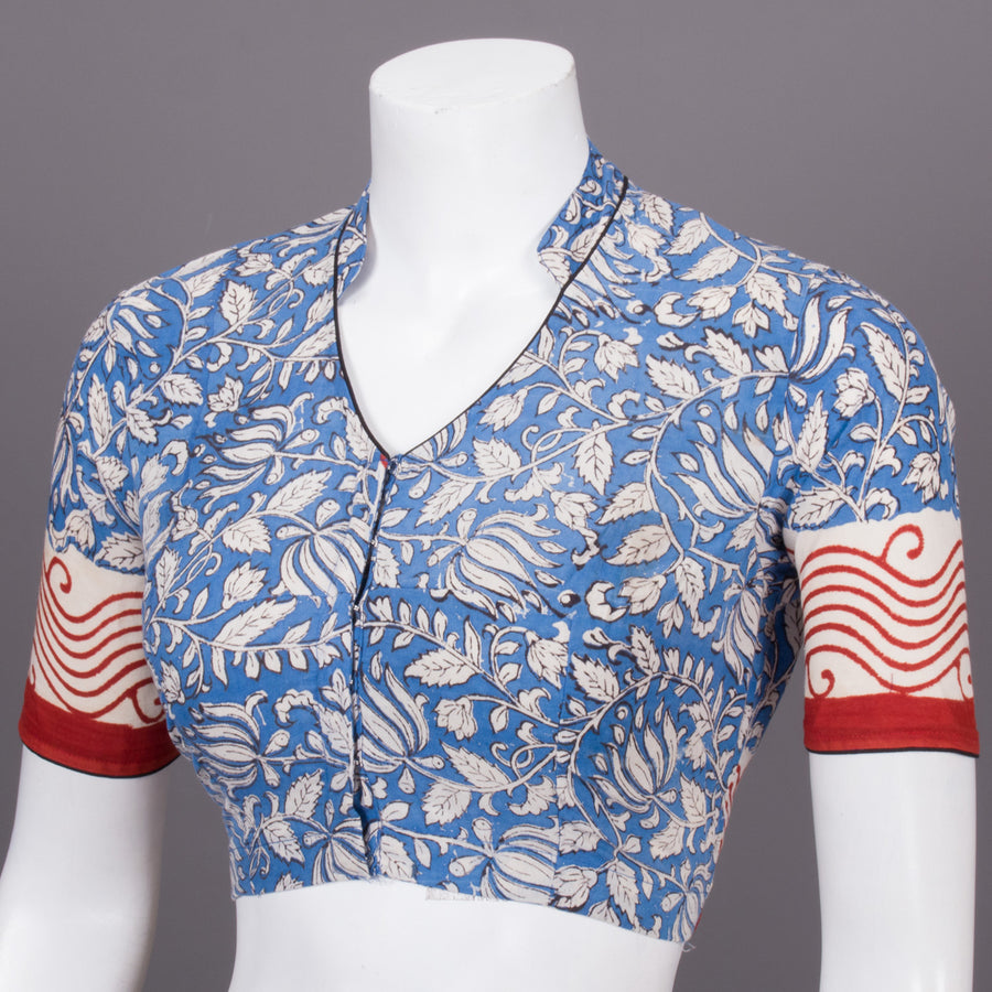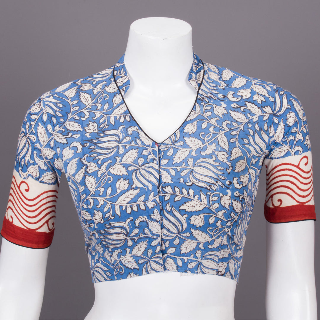 Blue Hand Block Printed Cotton Blouse 10073321