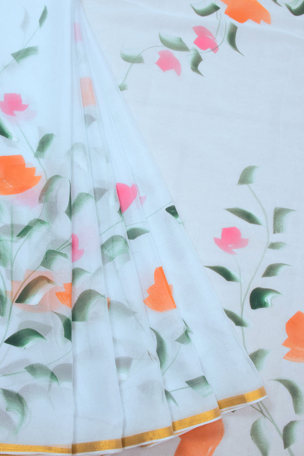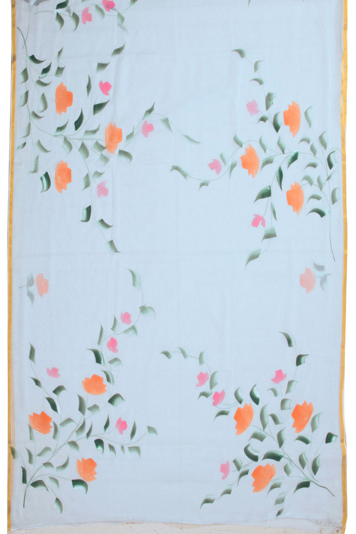Indulge in elegant charm with our Blue Hand Painted Chiffon Saree. Each piece is carefully hand painted with intricate designs, making each saree a unique work of art. Made from high quality chiffon, it is lightweight and breathable, perfect for any occasion. Elevate your style with this must-have addition to your wardrobe!
