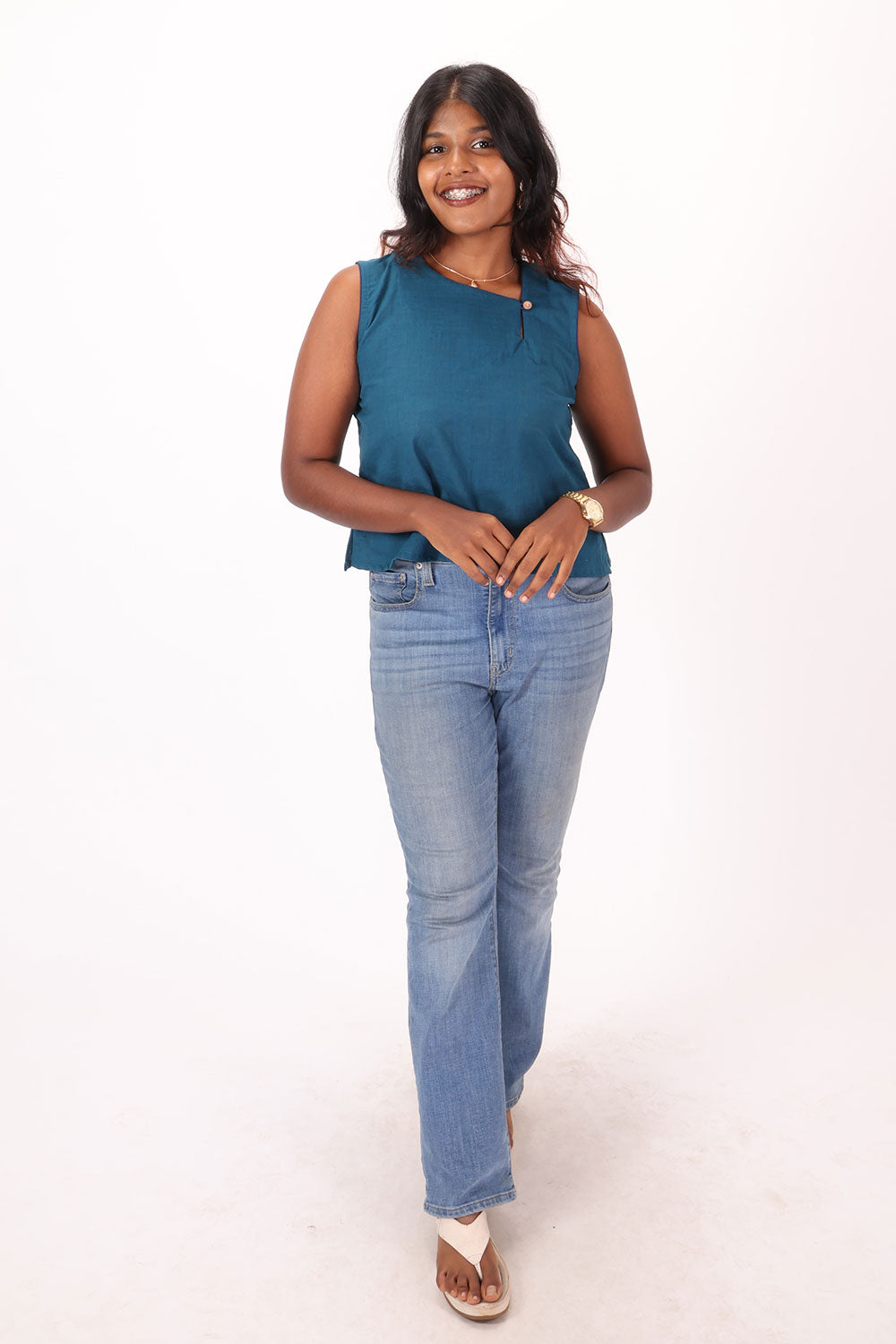 Blue Handcrafted Slub Cotton Crop Top 10073148