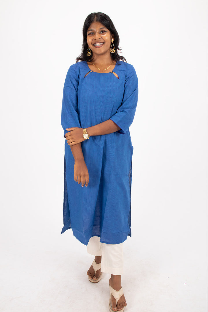 Elevate your style with our Blue Handcrafted Stripes Kurta, designed to blend tradition with contemporary flair. The subtle striped pattern adds sophistication, while the handcrafted detailing ensures each piece is unique. Made for comfort and versatility, it pairs effortlessly with jeans for a casual vibe or beige pants for a polished look. Perfect for any occasion, this kurta brings a refined touch to your wardrobe.