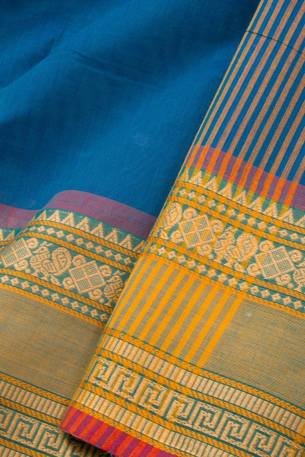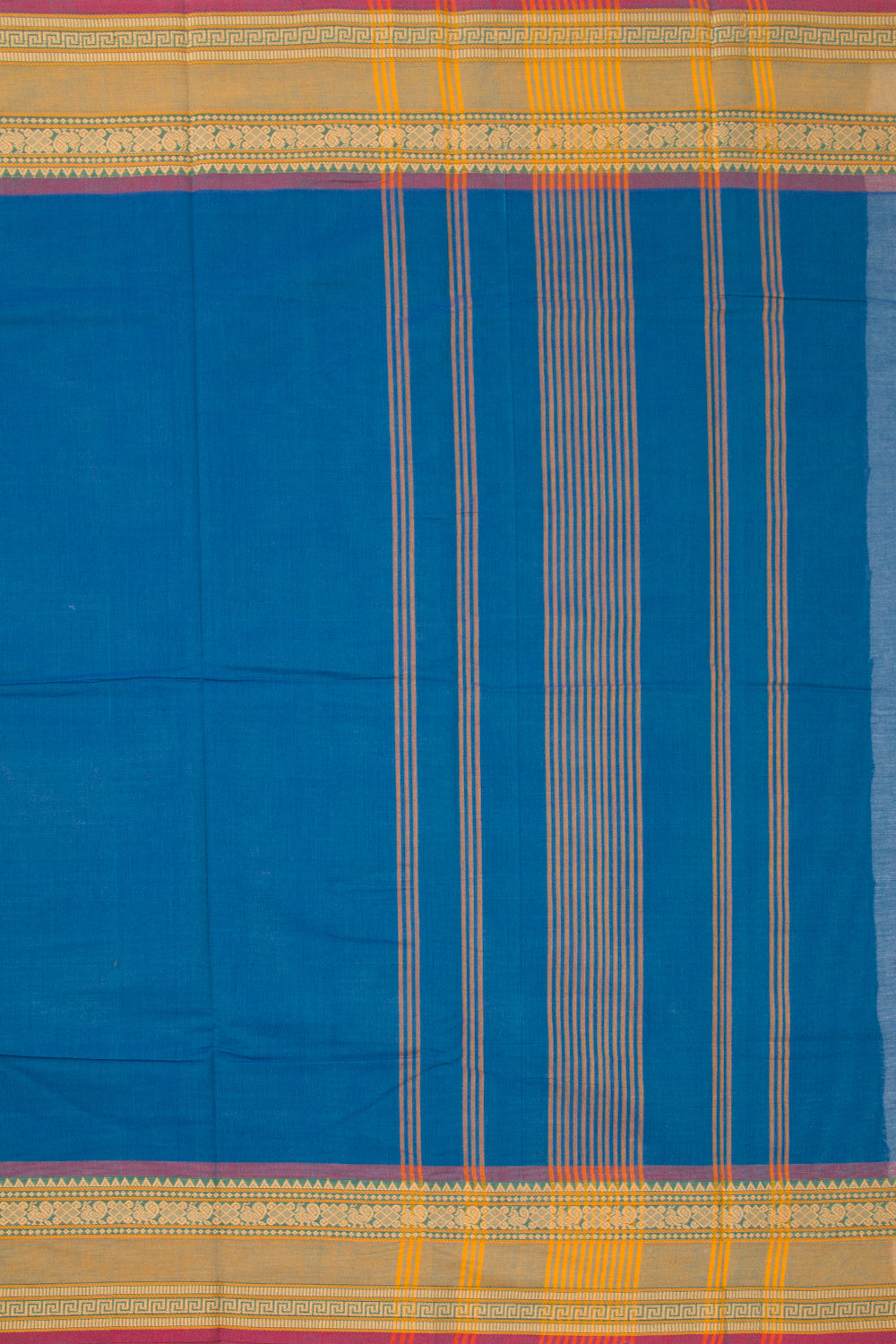 Experience the vibrant culture of Chettinad with our Blue Handloom Chettinad Cotton Saree. Made with high-quality handloom cotton, this saree is both comfortable and luxurious. The vibrant blue color and intricate handloom work make it a must-have for every fashion-forward woman. Elevate your style and make a statement with this gorgeous saree!