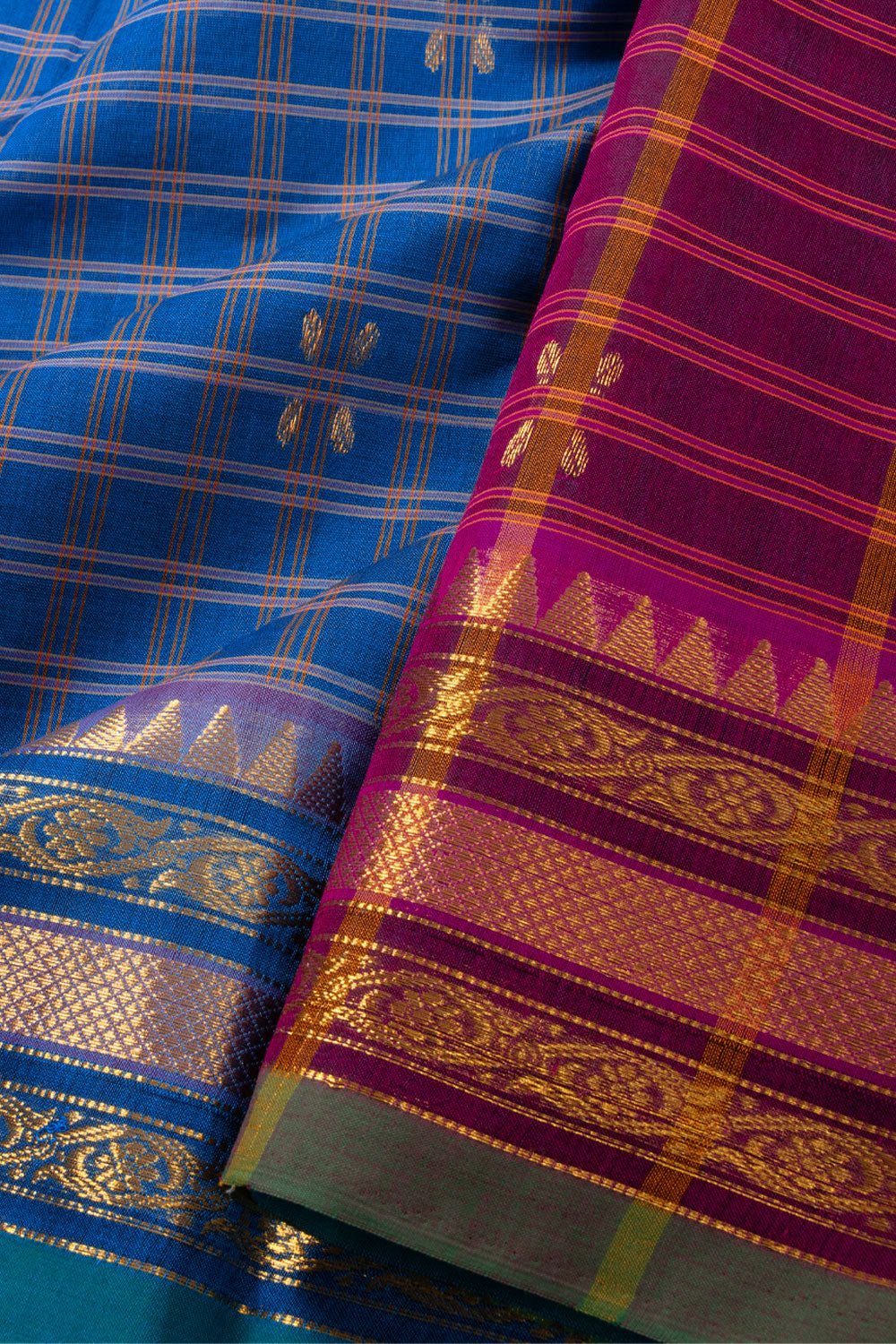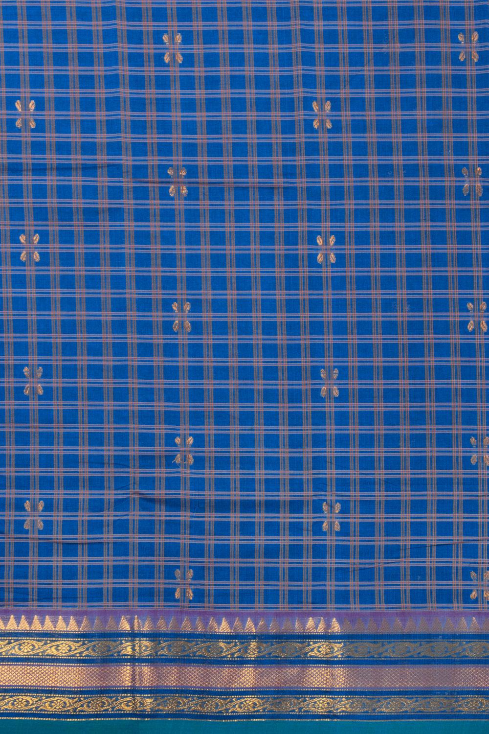 Blue Handloom Chettinad Cotton Saree Without Blouse 10072571