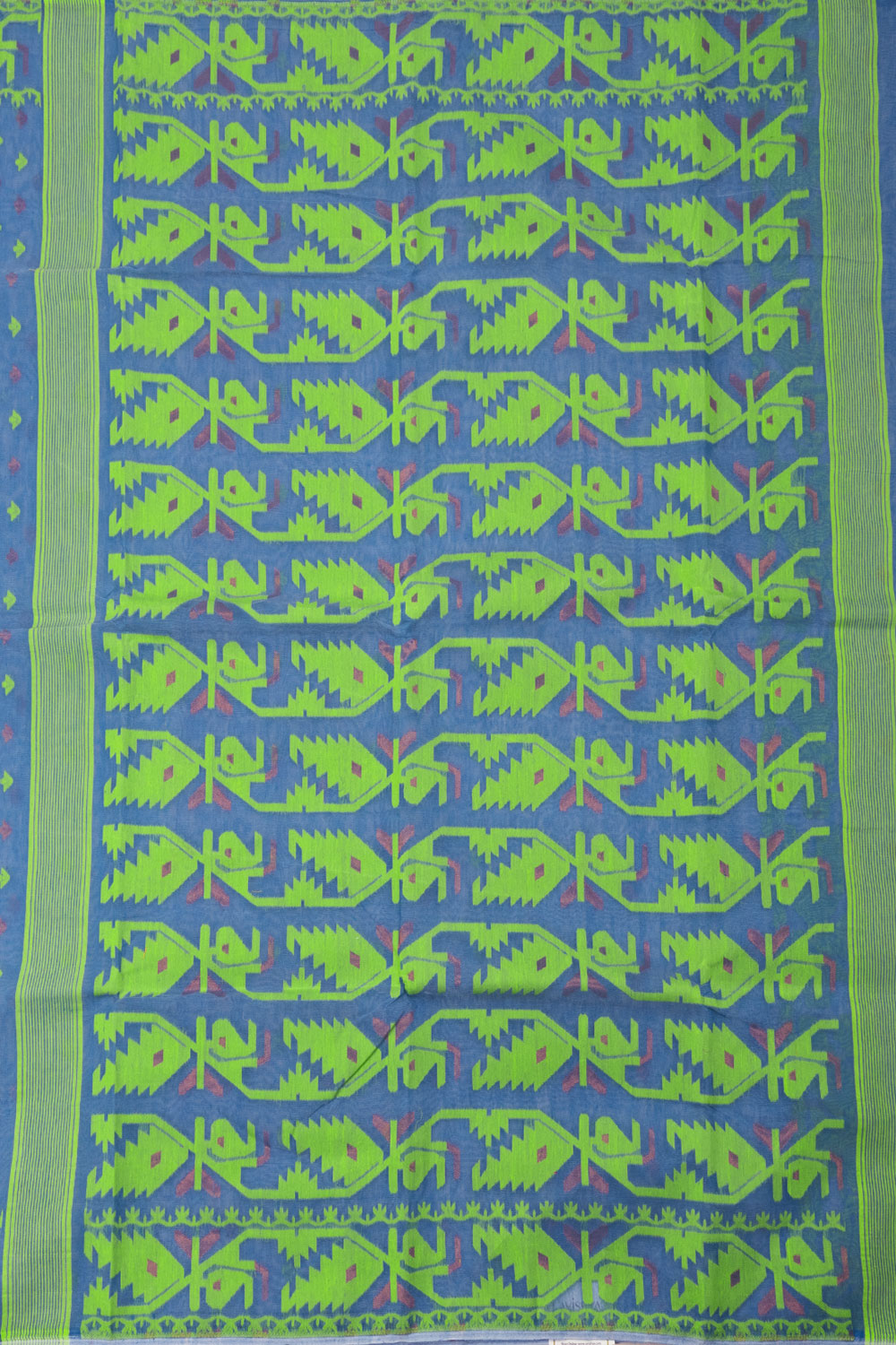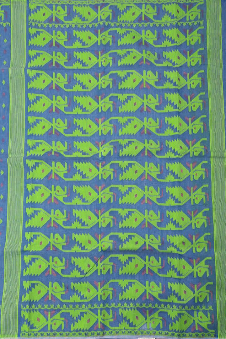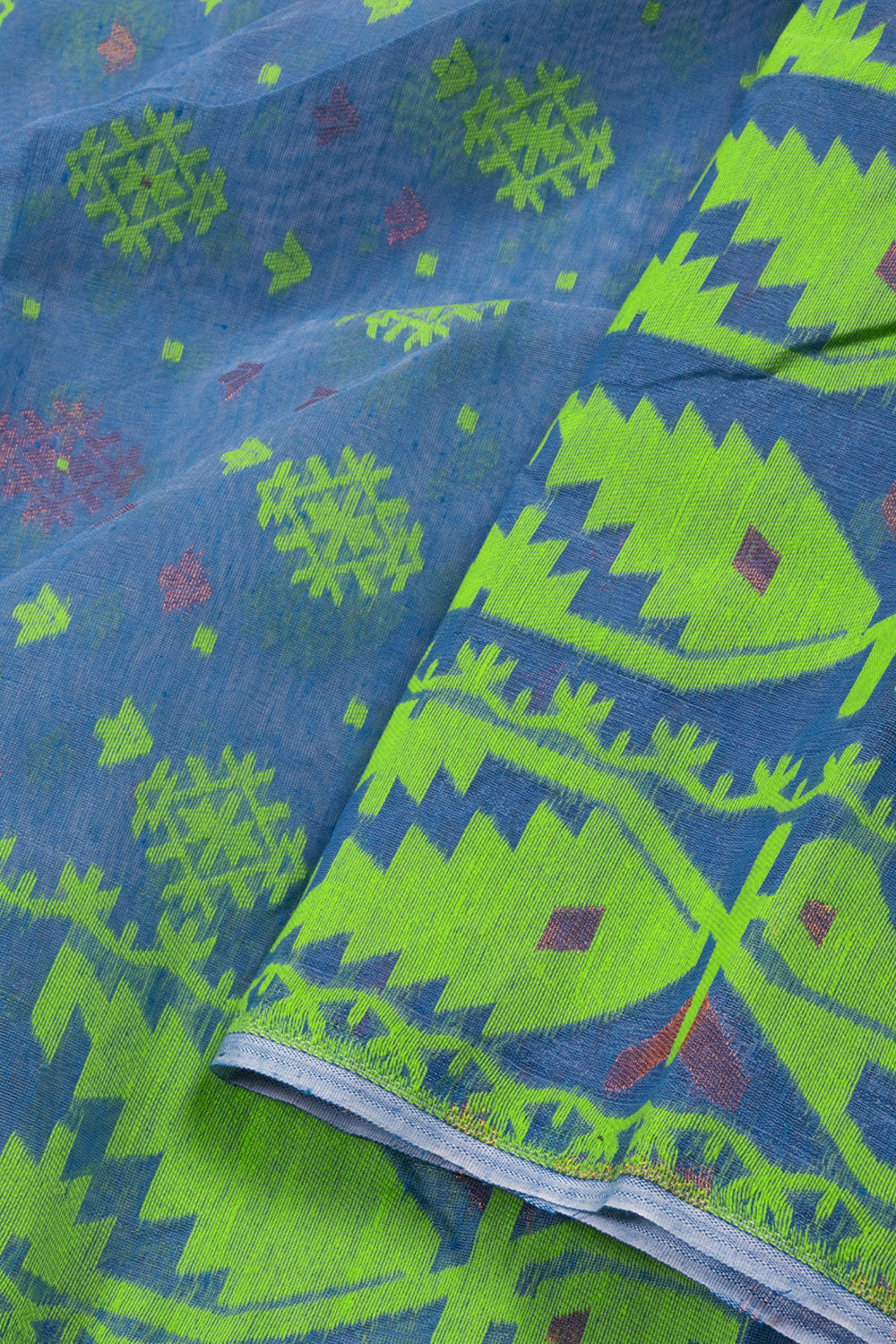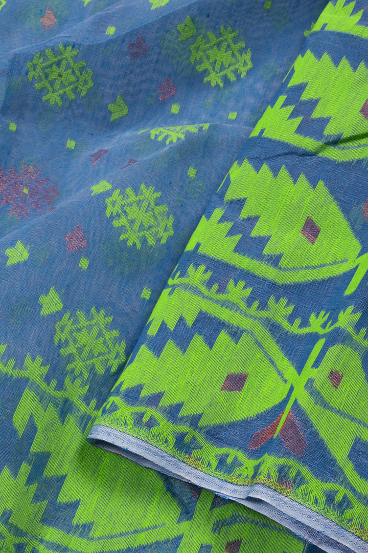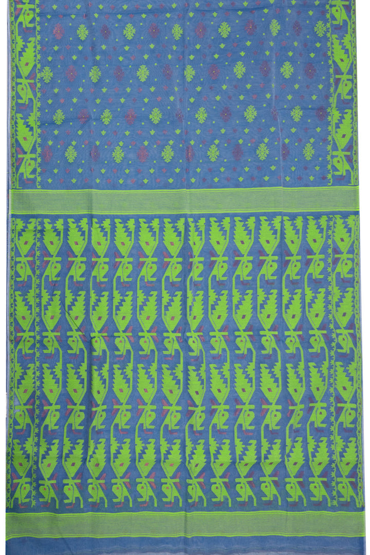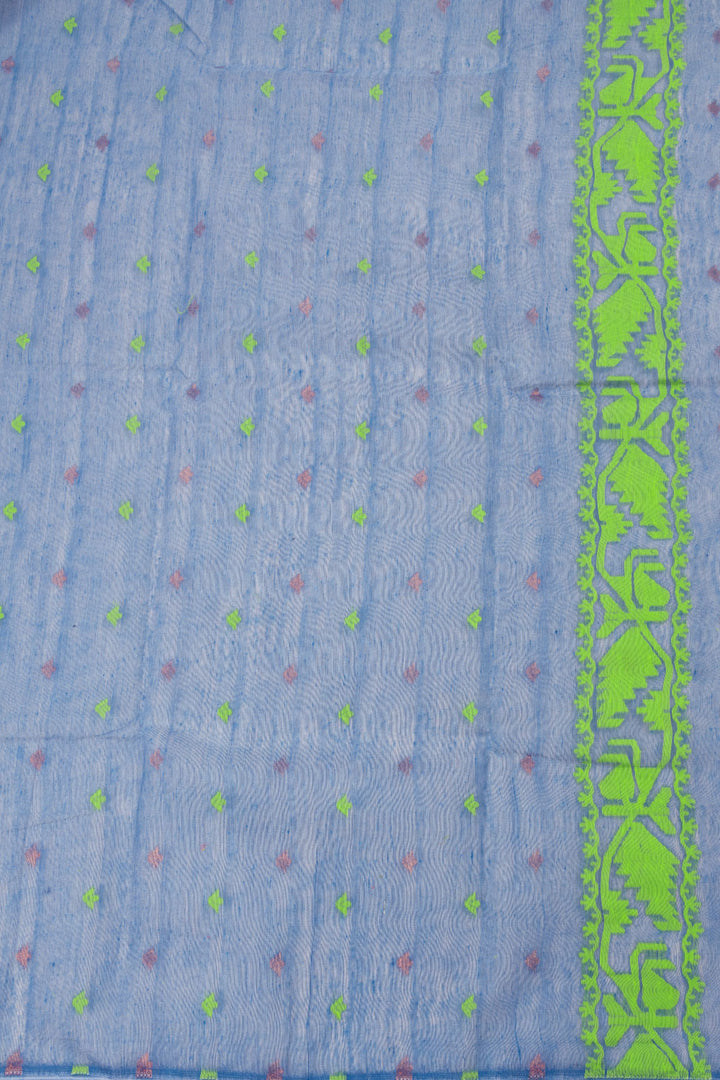 Blue Handloom Jamdani Style Cotton Saree with Blouse 10074221